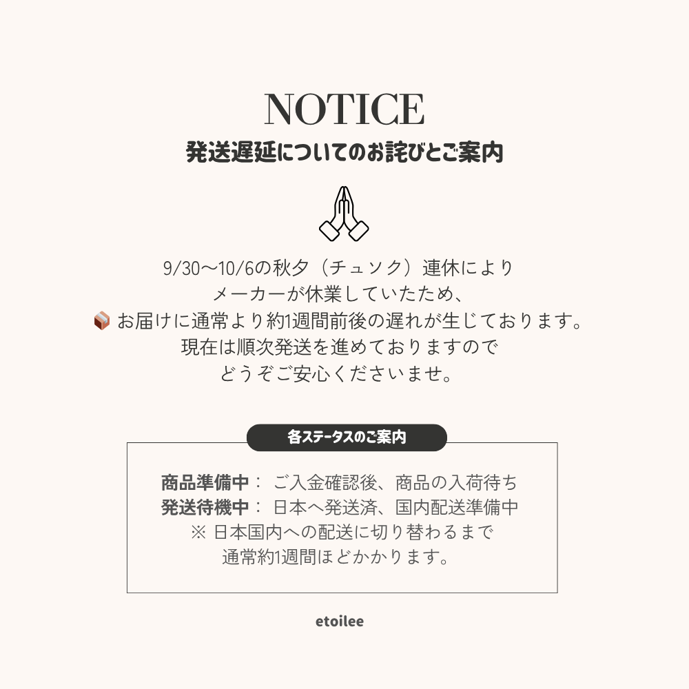 このたび、9月30日〜10月6日の間、海外メーカーが秋夕(チュソク)に伴い休業しておりましたため、
