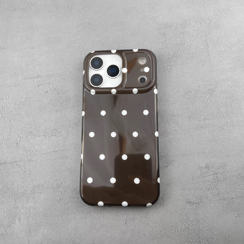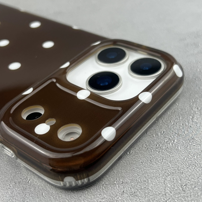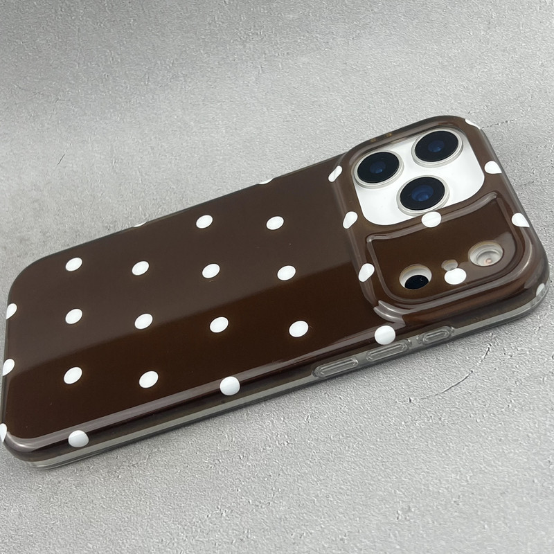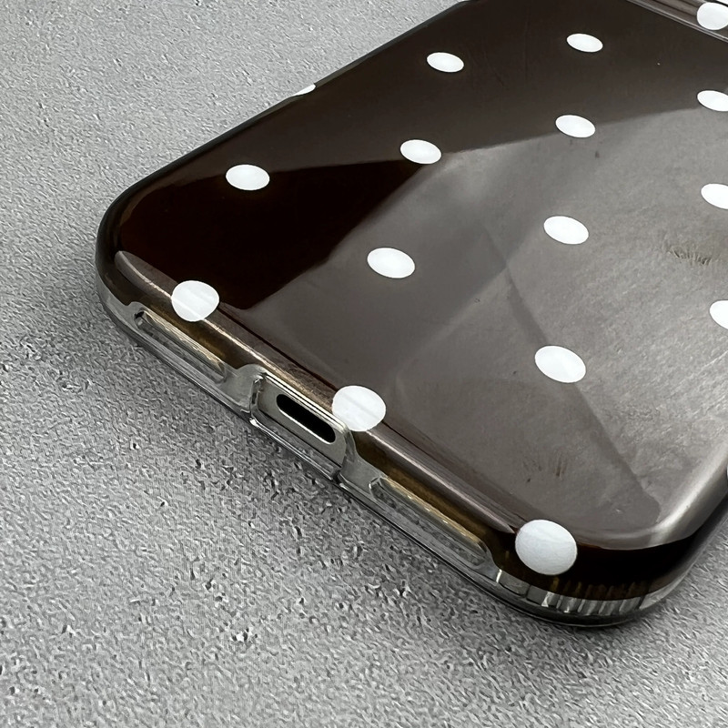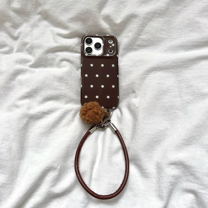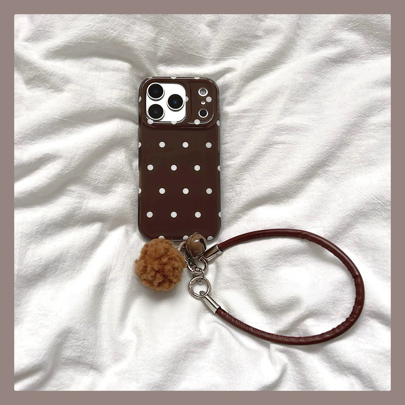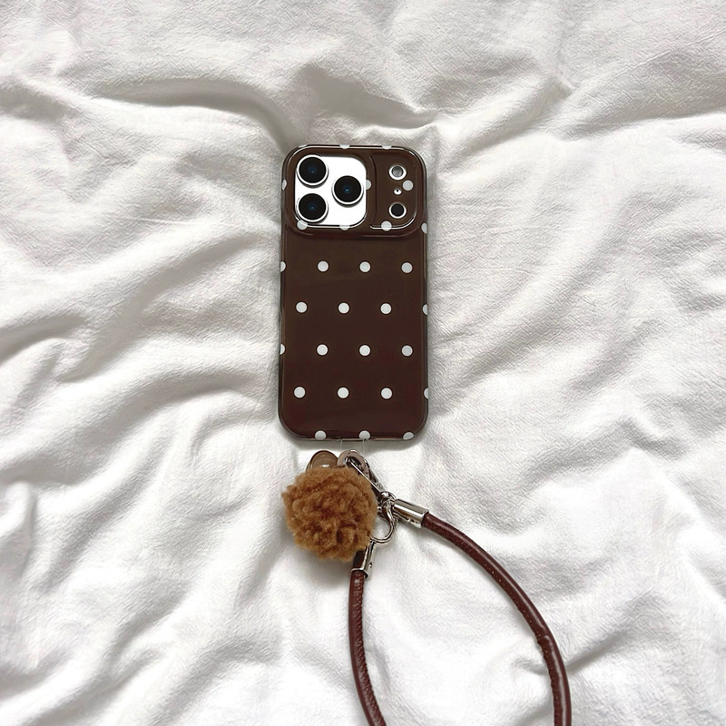 ブラウンホワイトドット柄ストラップ iphoneケース