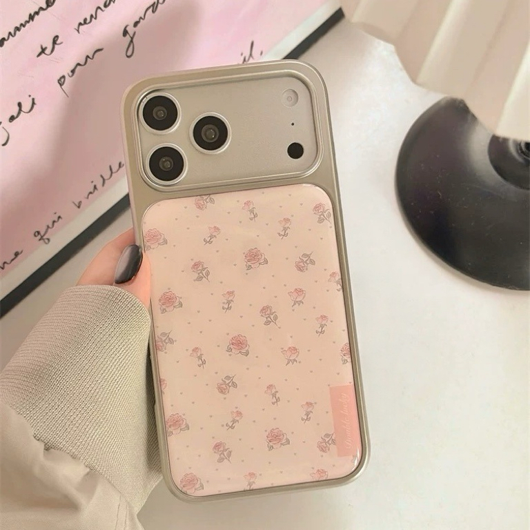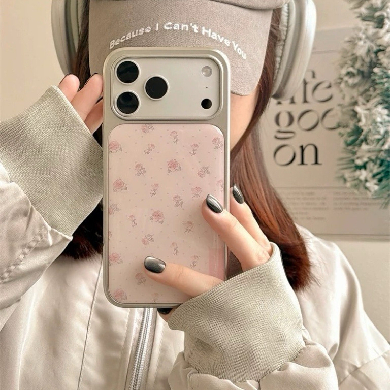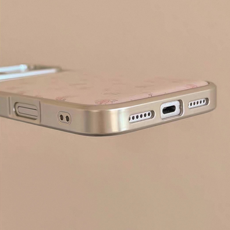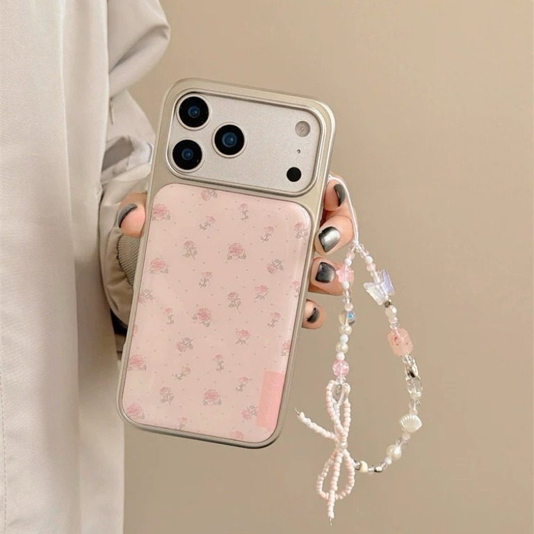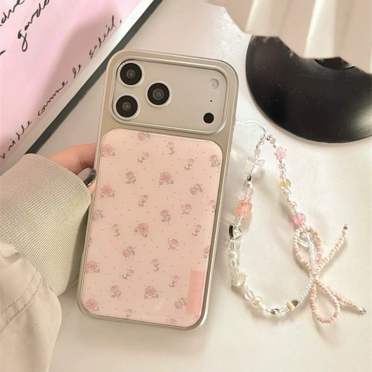 Pink rose dot silver side strap iphoneケース