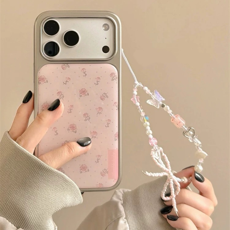 ピンクローズドットシルバーサイドストラップ iphoneケース