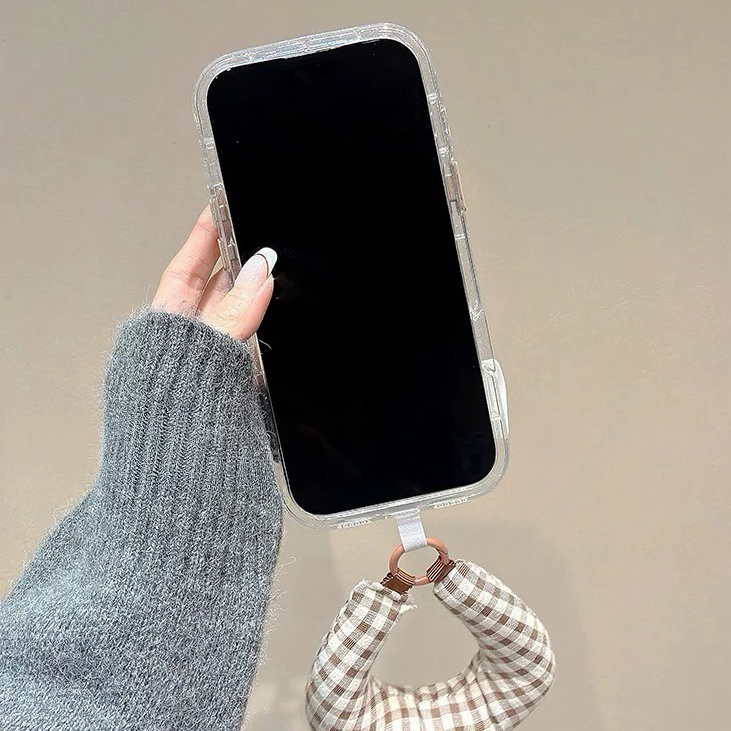 ホワイトワンちゃんチェックストラップ iphoneケース