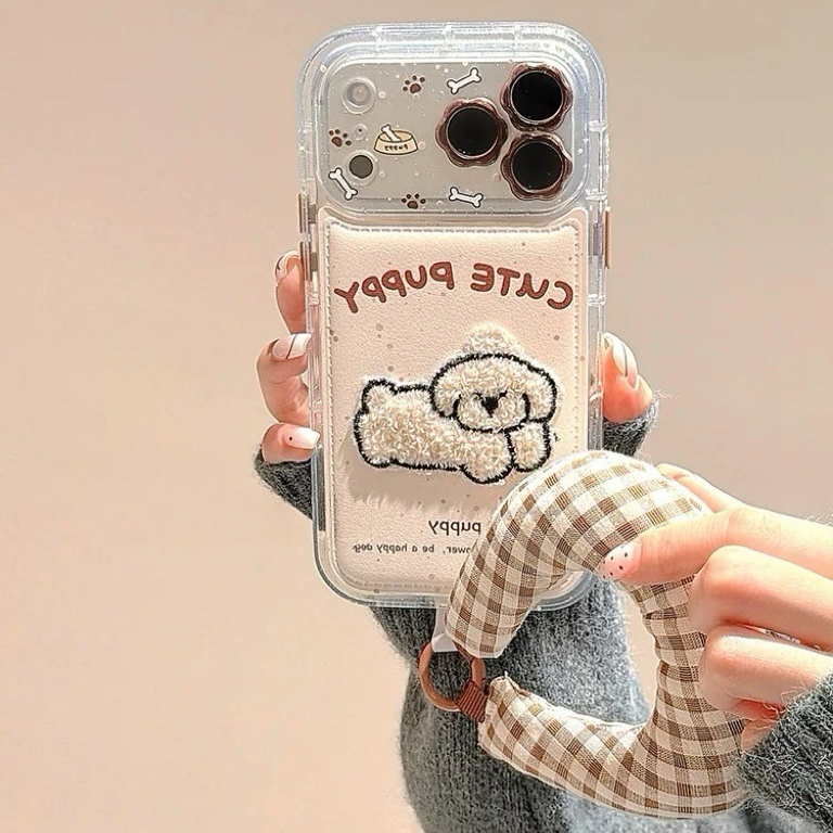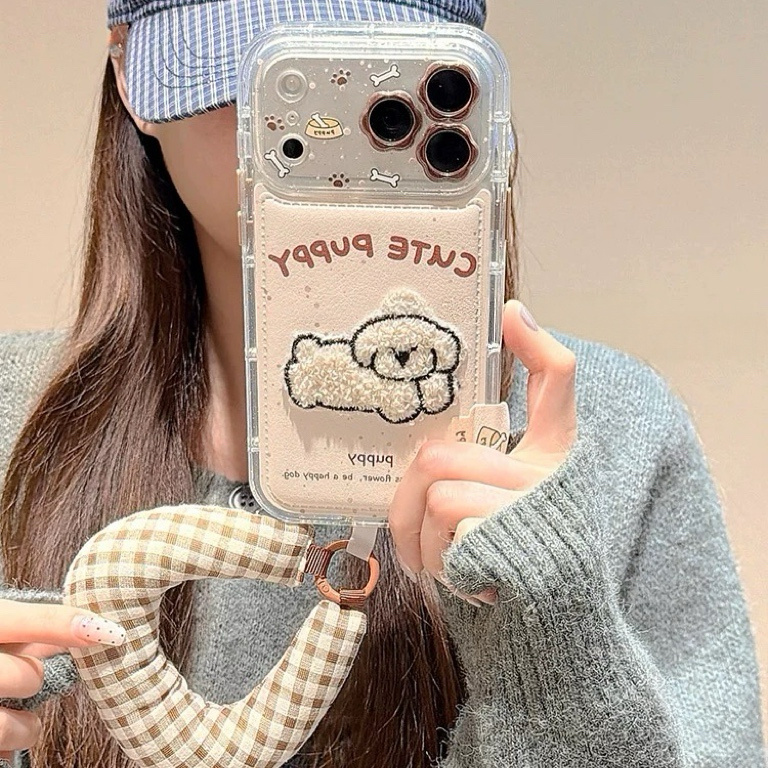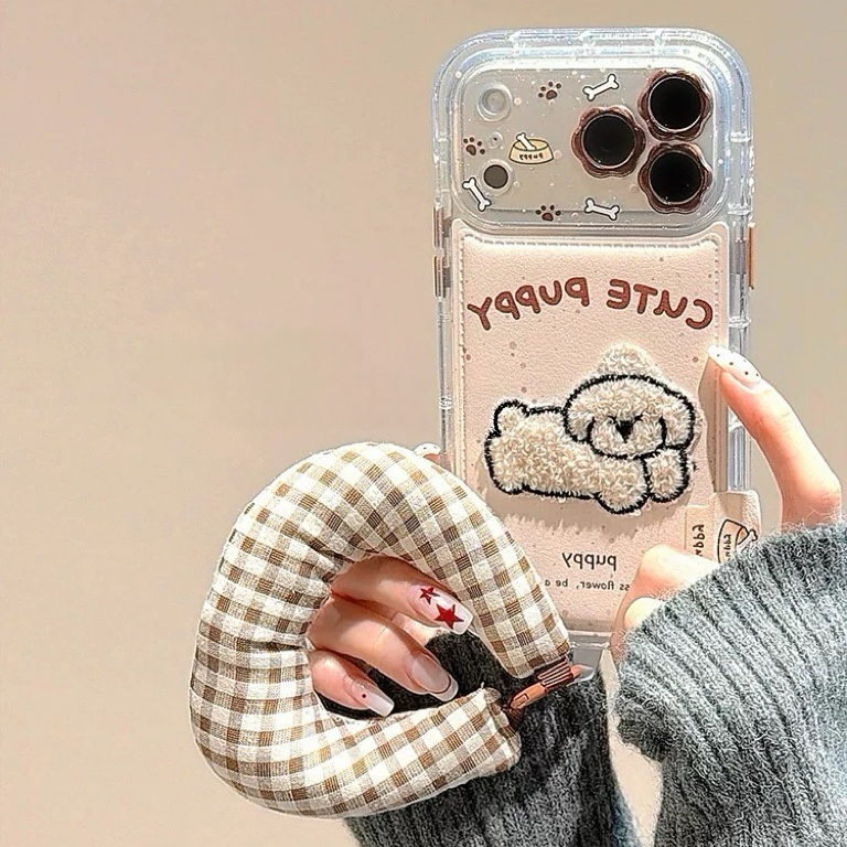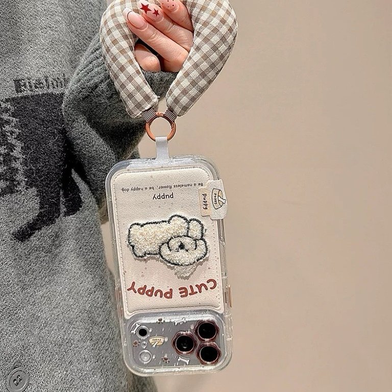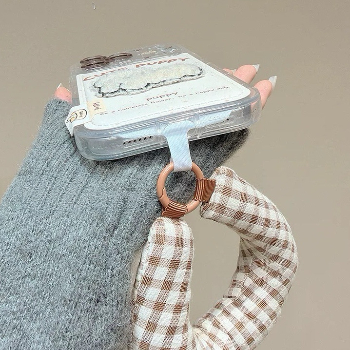 White puppy check strap iphoneケース