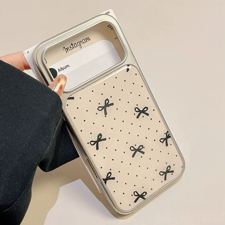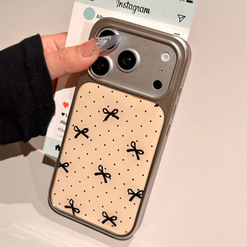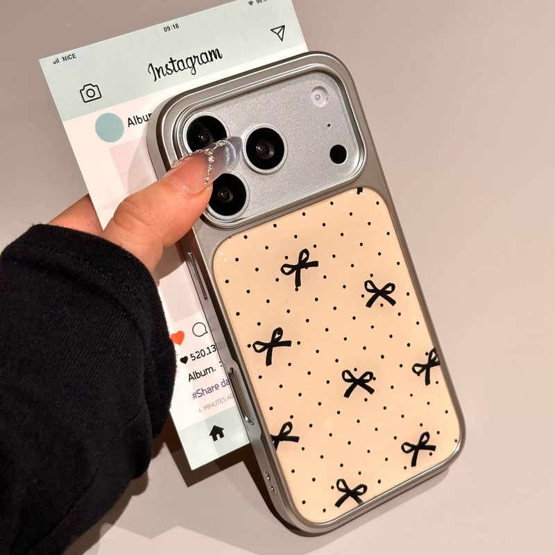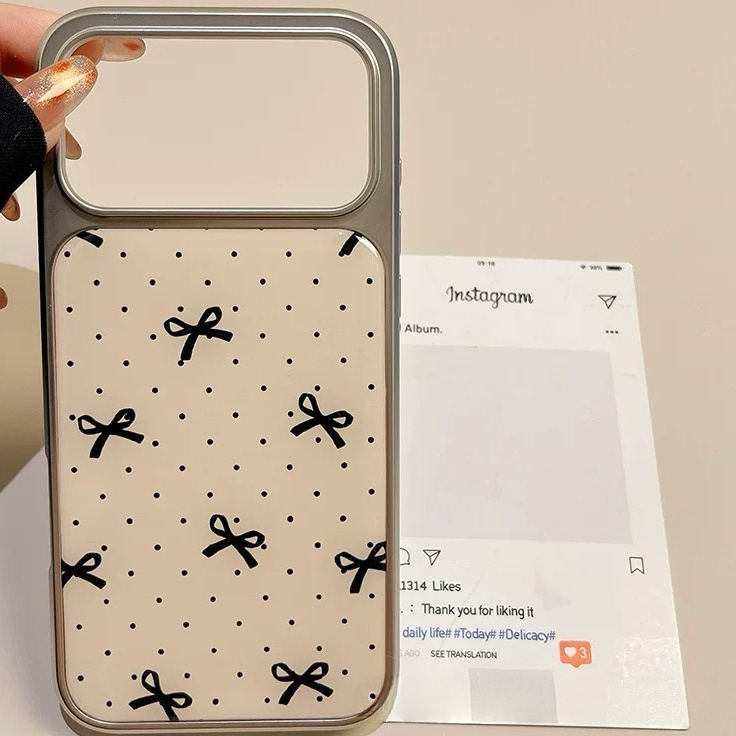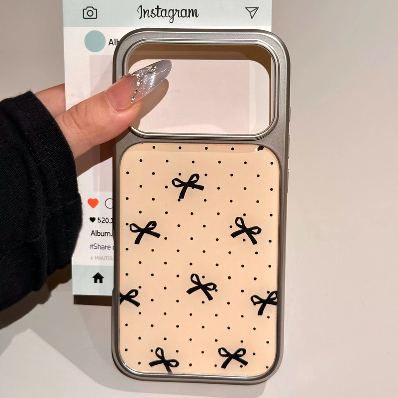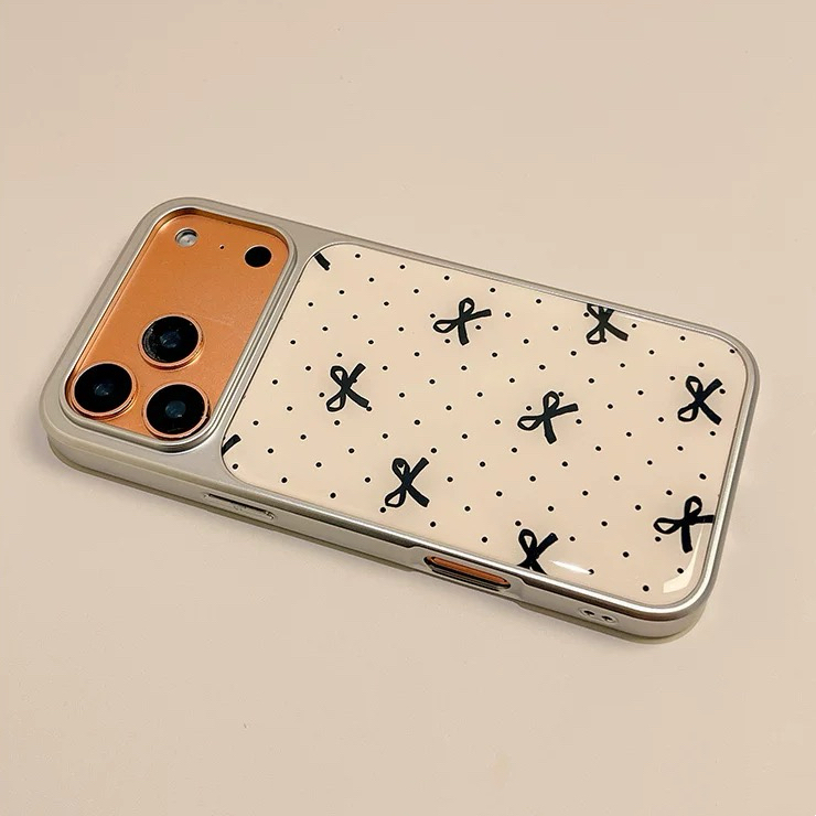 ブラックリボンドット柄シルバーサイド iphoneケース