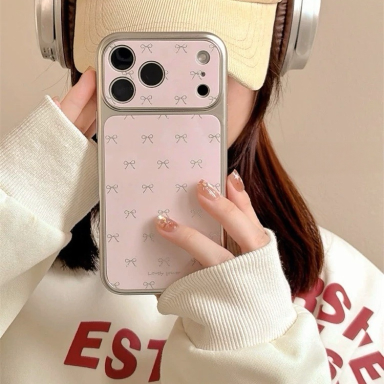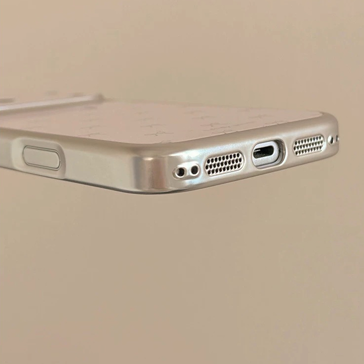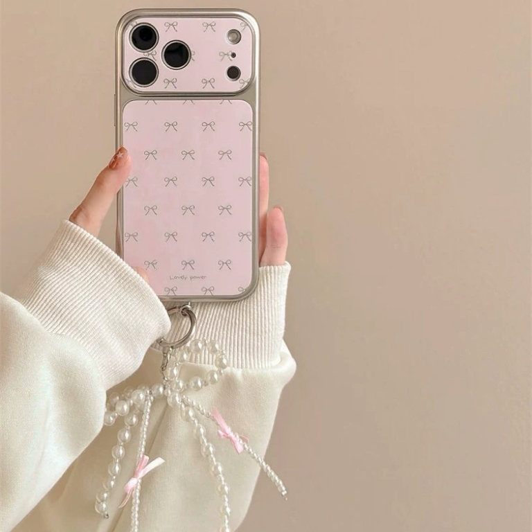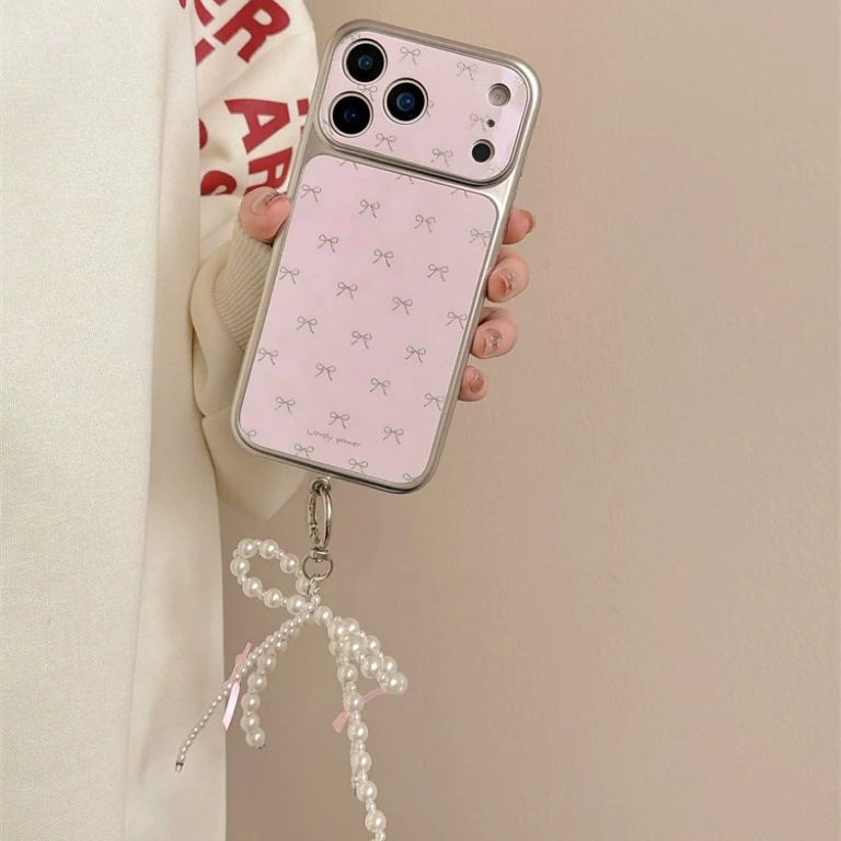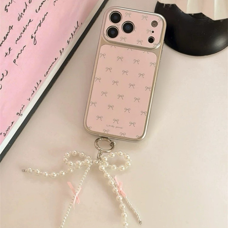 リボンピンクシルバーサイドストラップ iphoneケース
