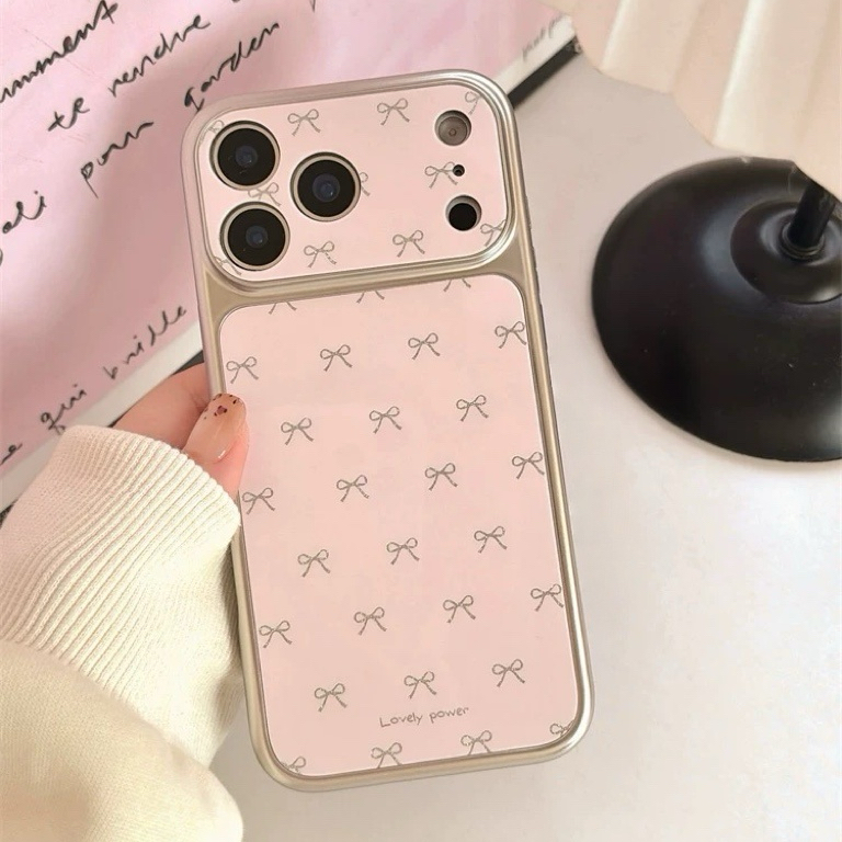 Ribbon pink silver side strap iphoneケース