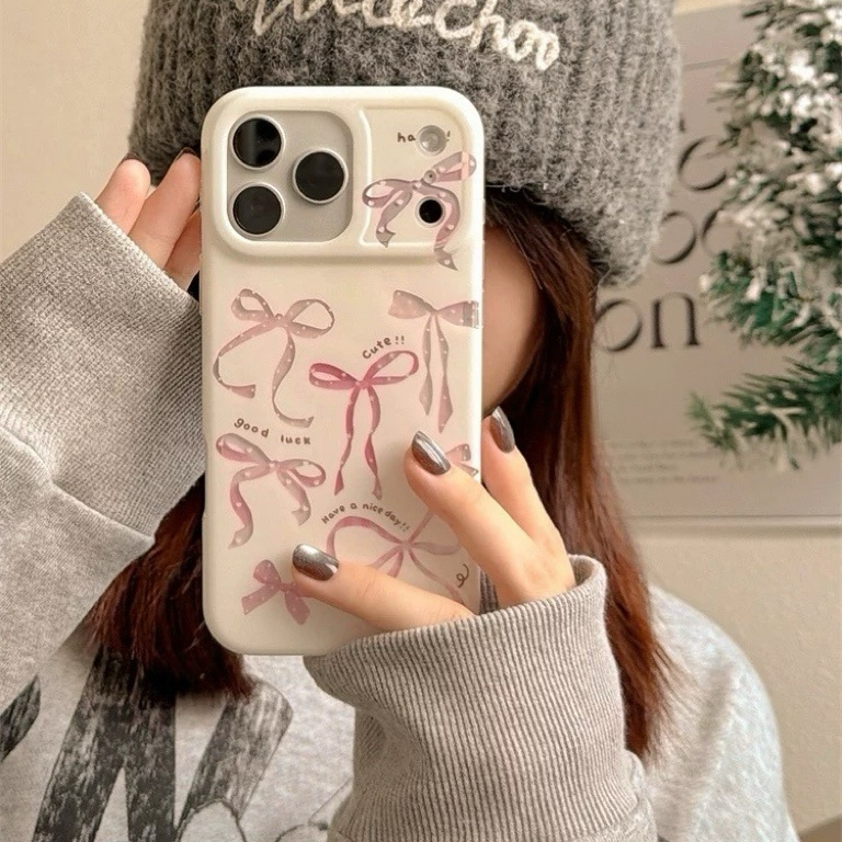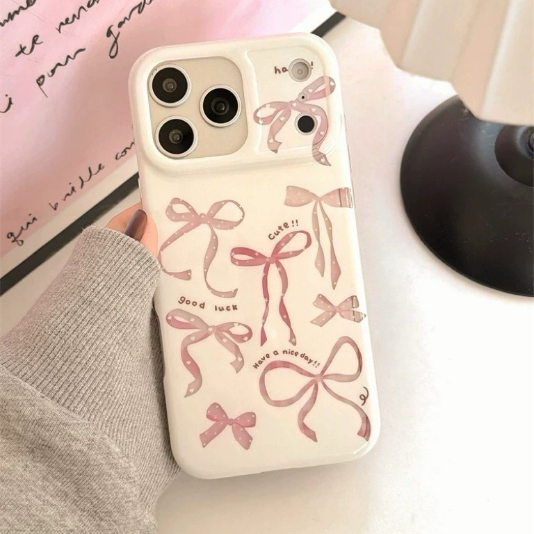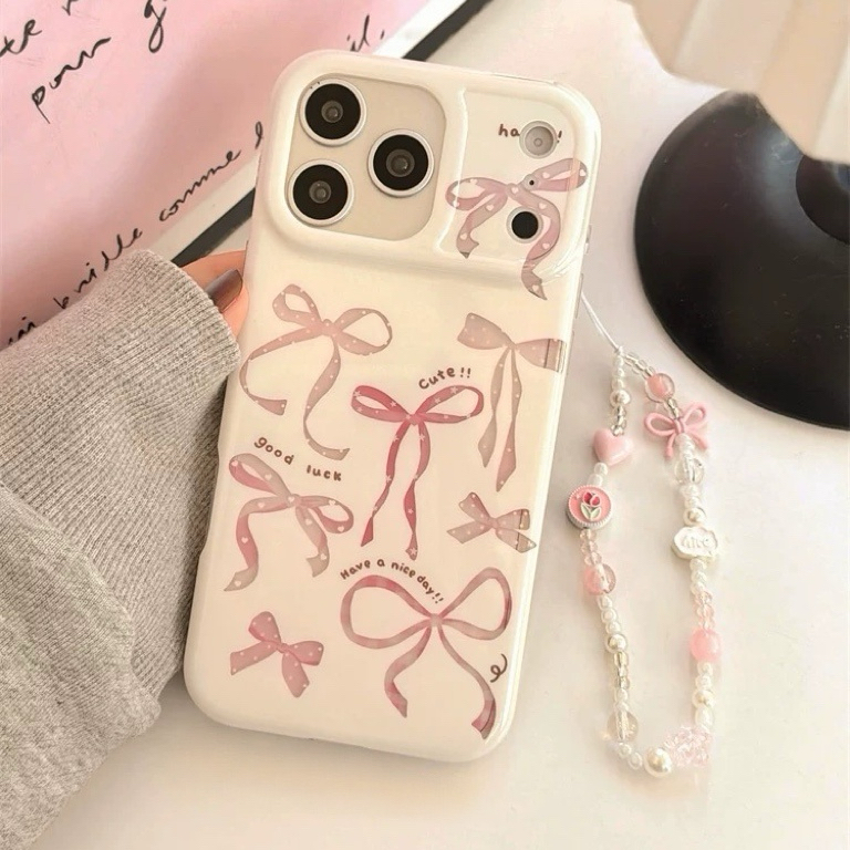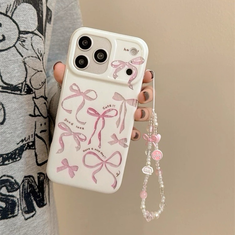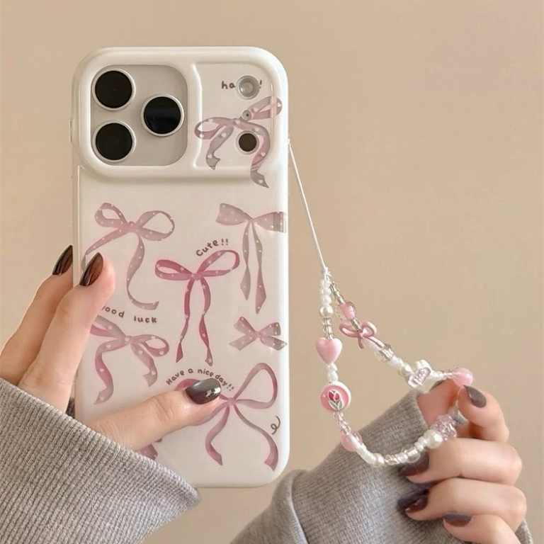 ピンクリボン柄ホワイトストラップ iphoneケース