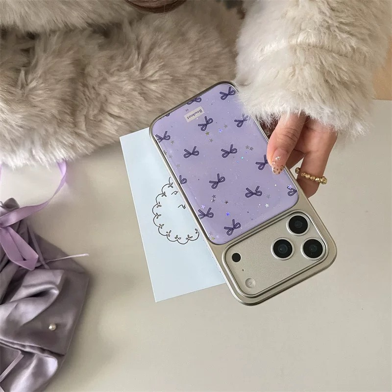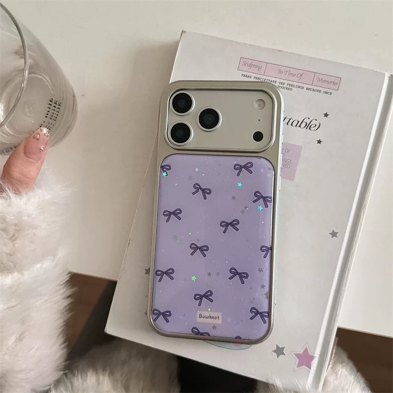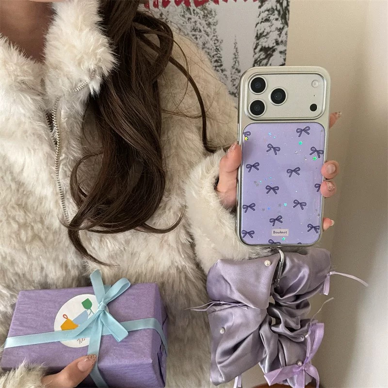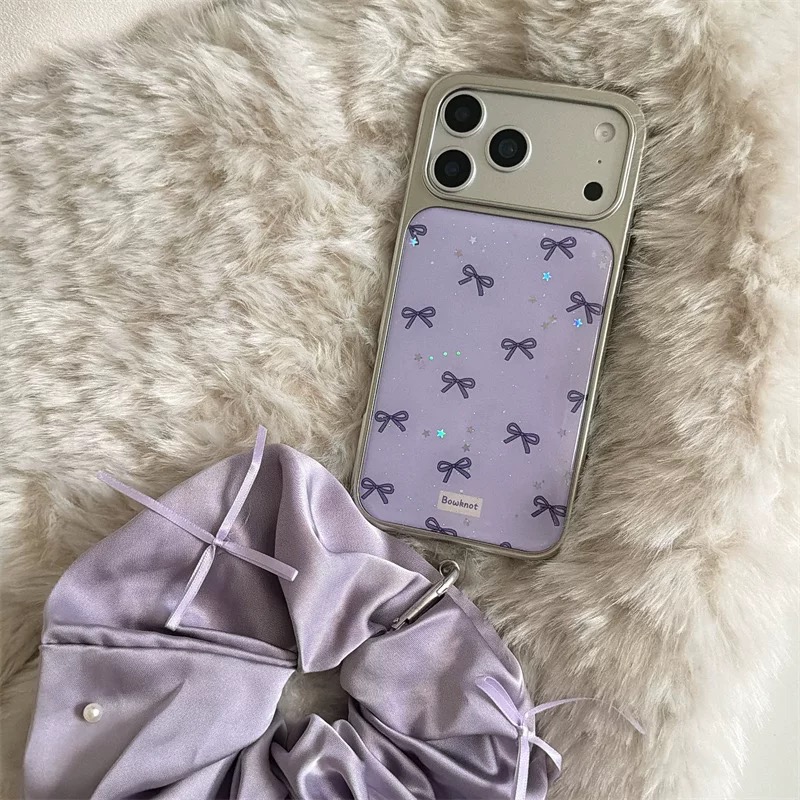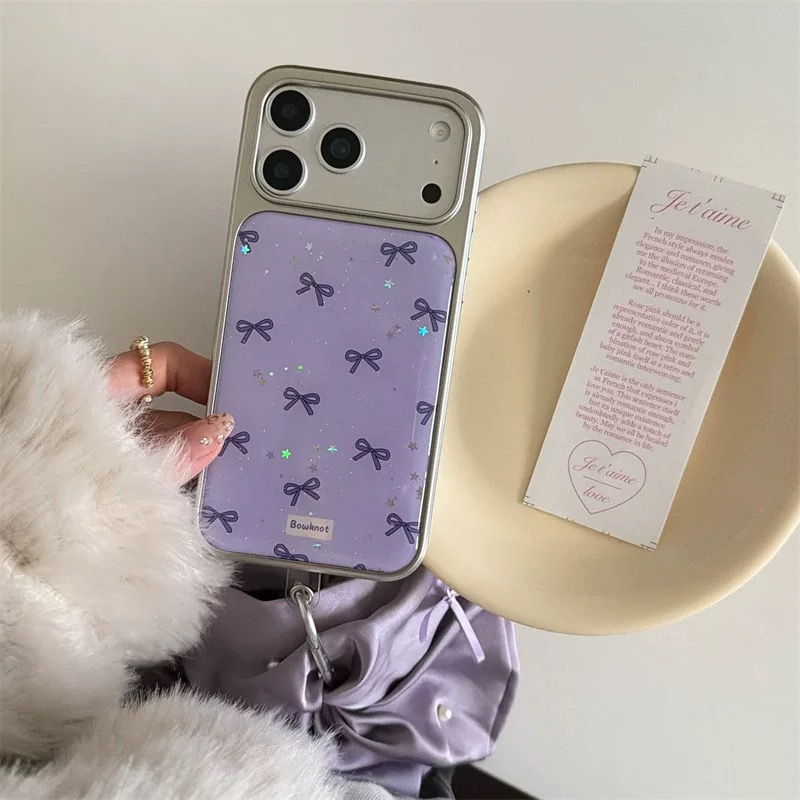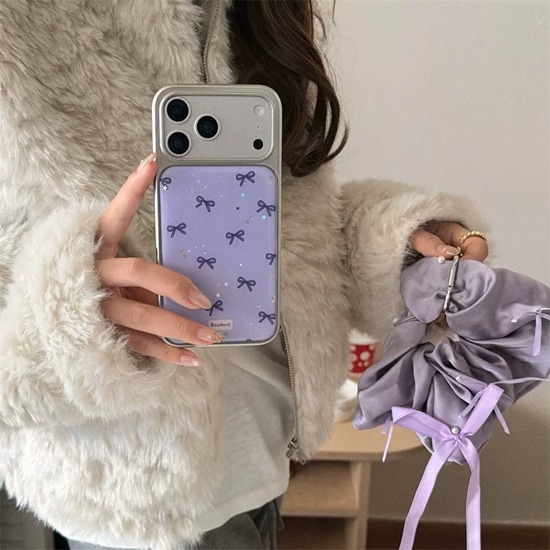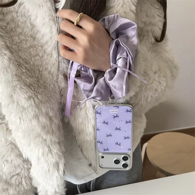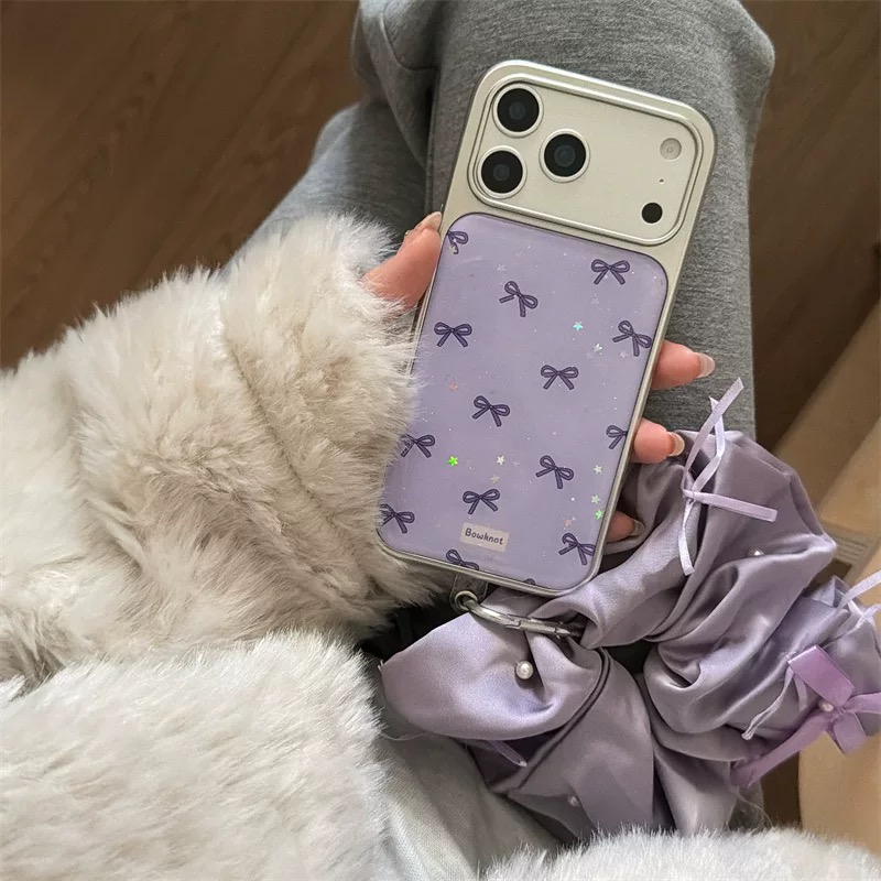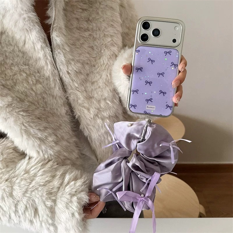 Purple ribbon glitter strap iphoneケース