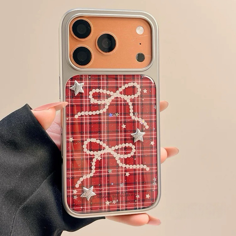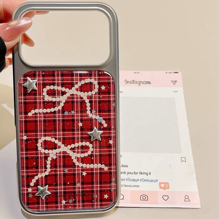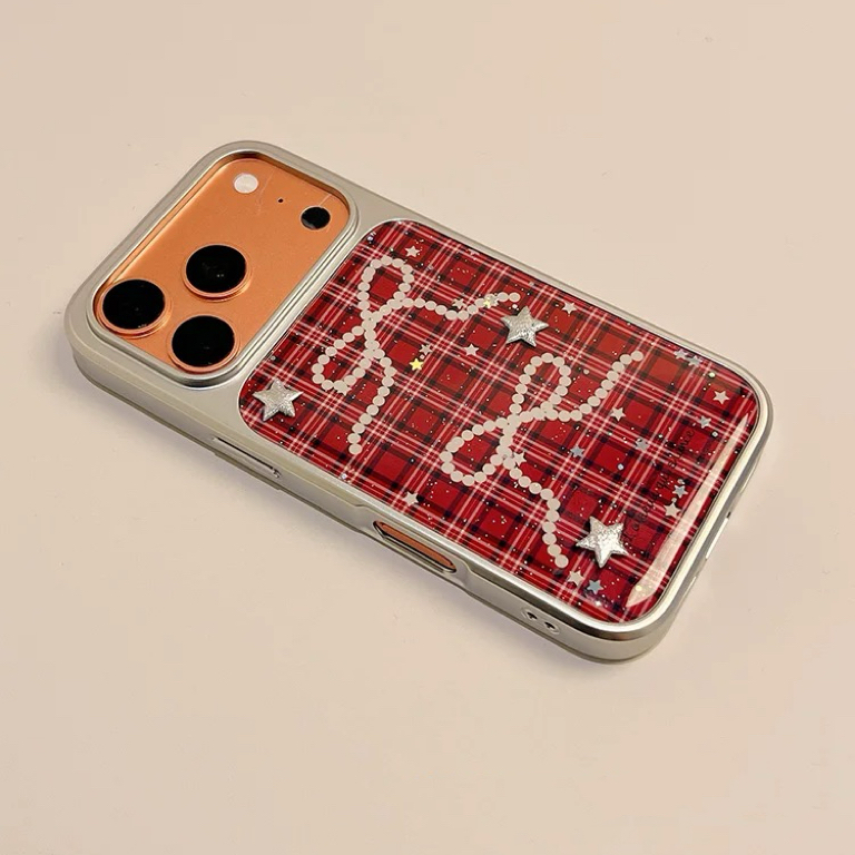 リボンレッドチェックシルバーサイド iphoneケース