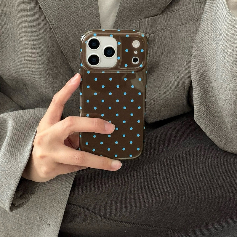 ブラウンブルードット iphoneケース