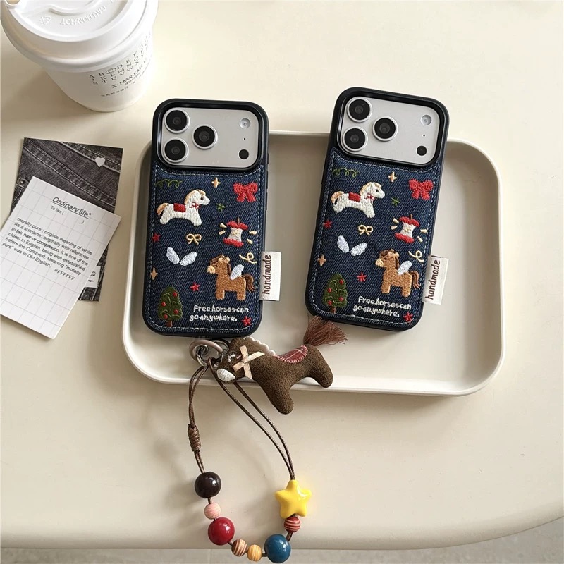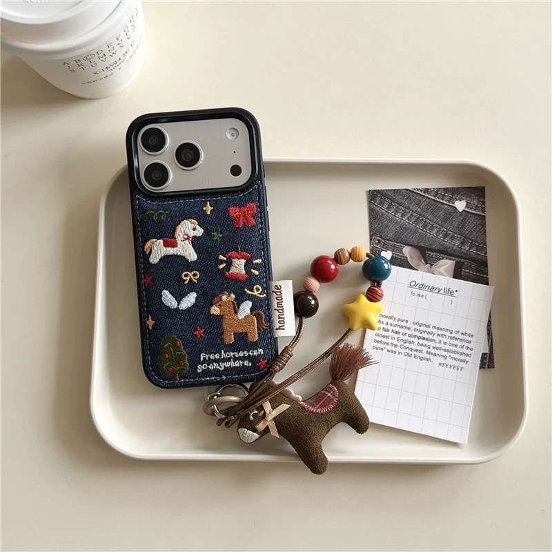 Horse tree denim strap iphoneケース