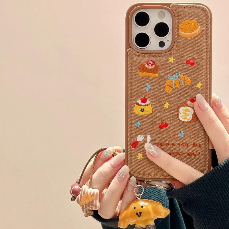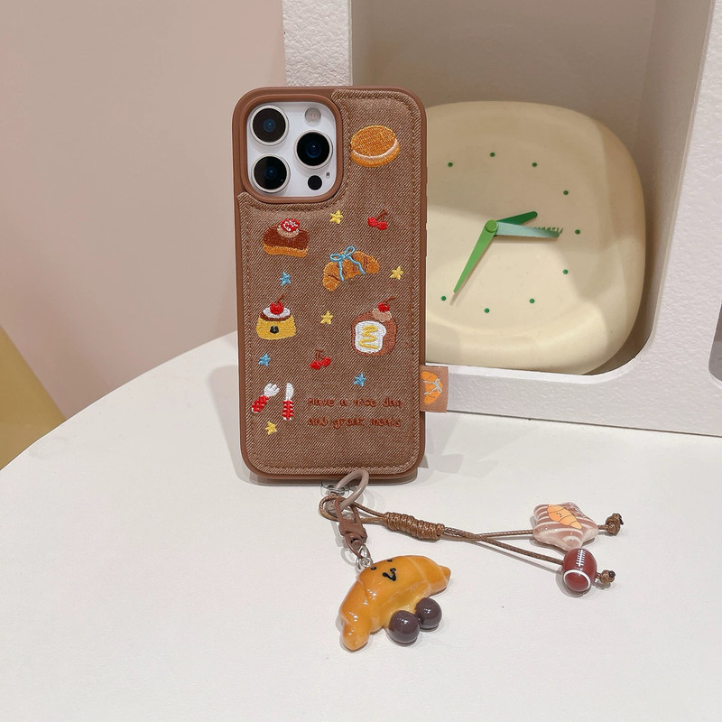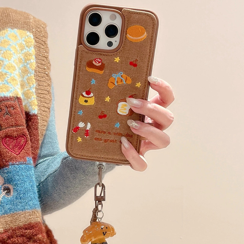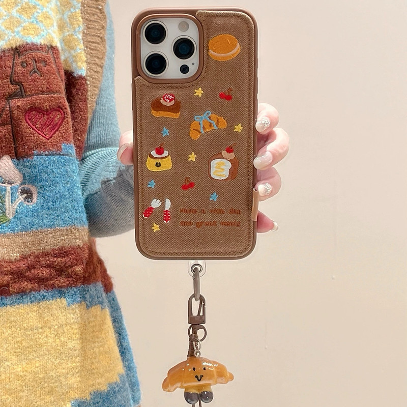 Bread cherry cake brown side strap iphoneケース