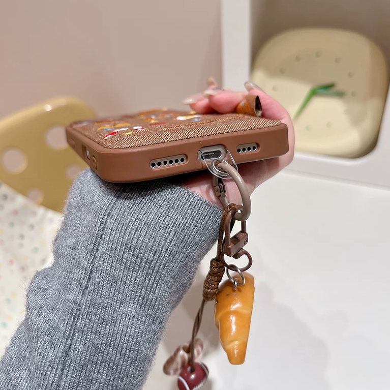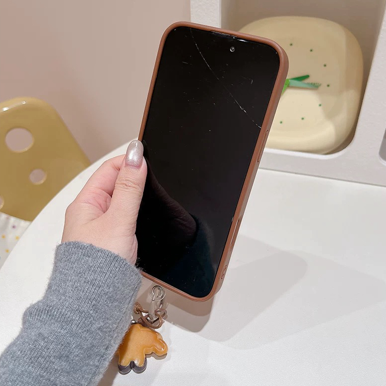 パンチェリーケーキブラウンサイドストラップ iphoneケース