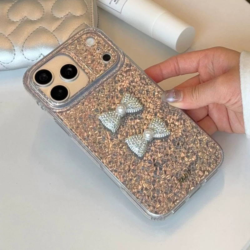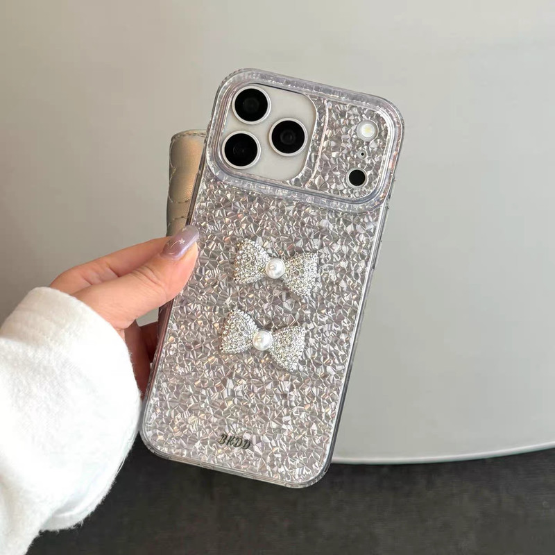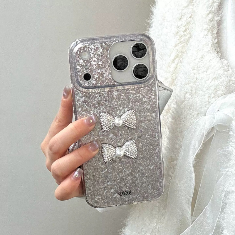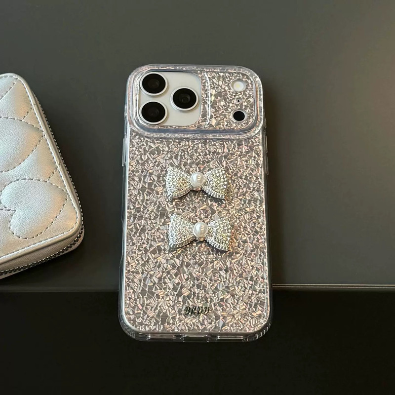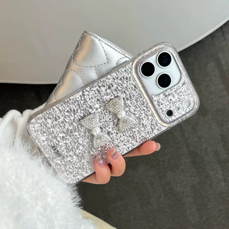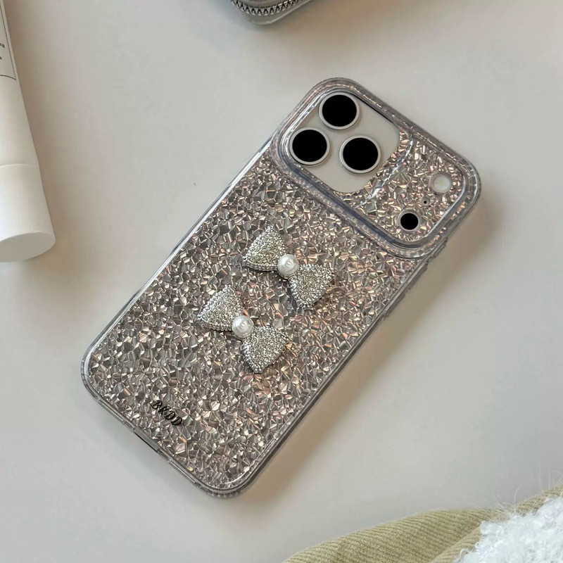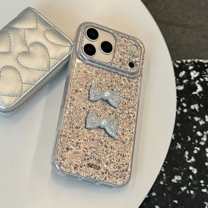 ツーリボンシルバーグリッター iphoneケース