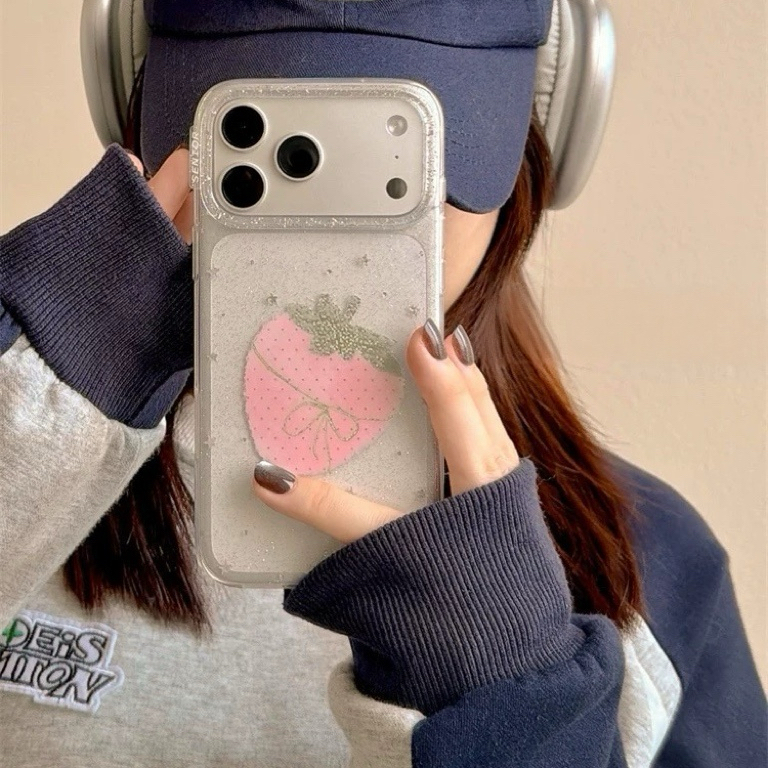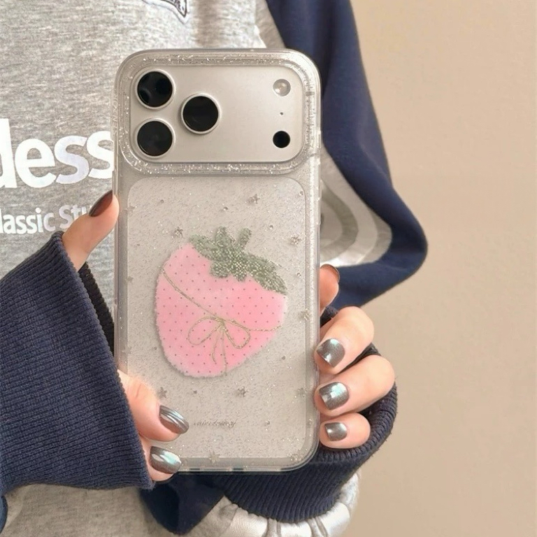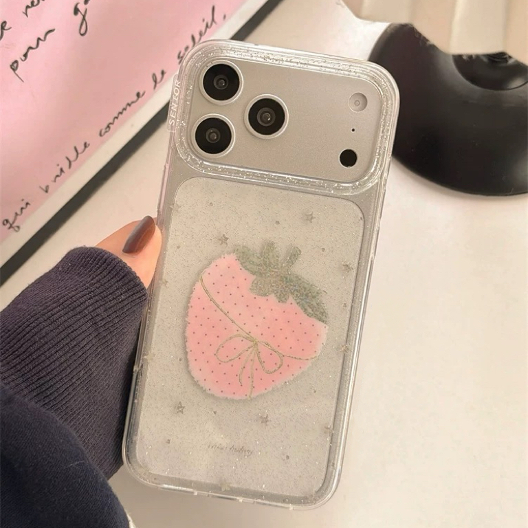 Strawberry ribbon glitter iphoneケース