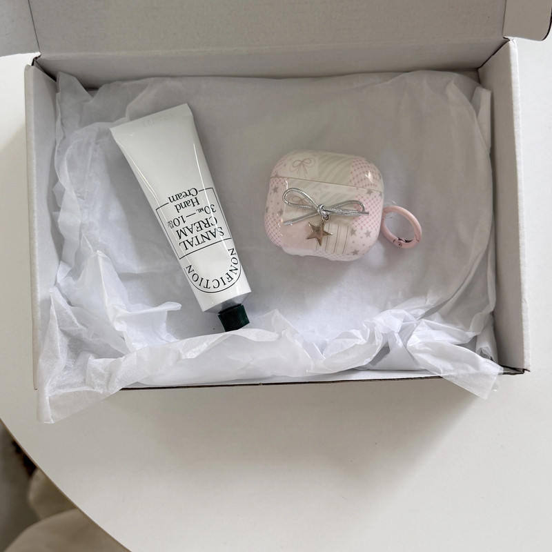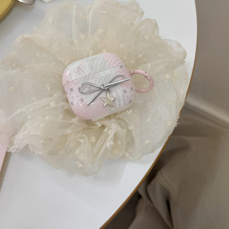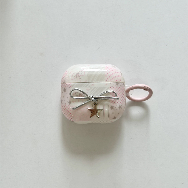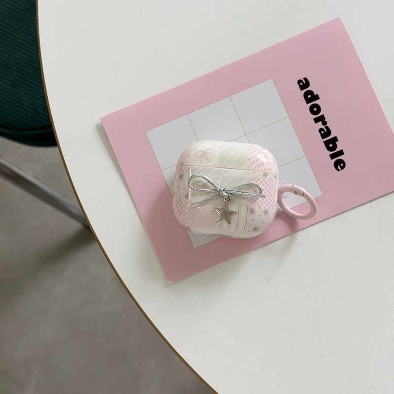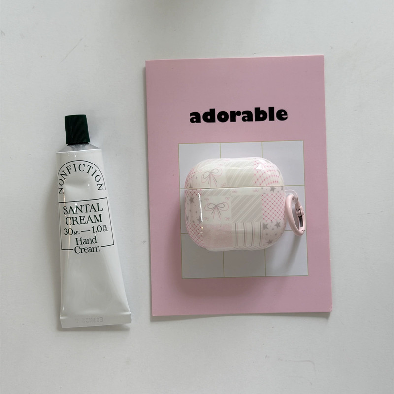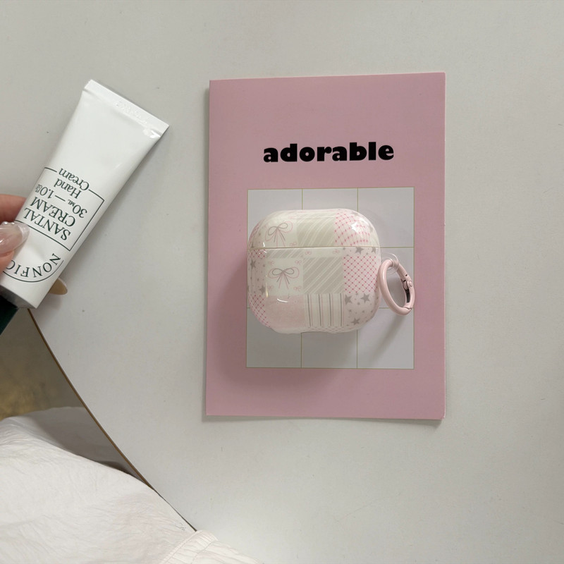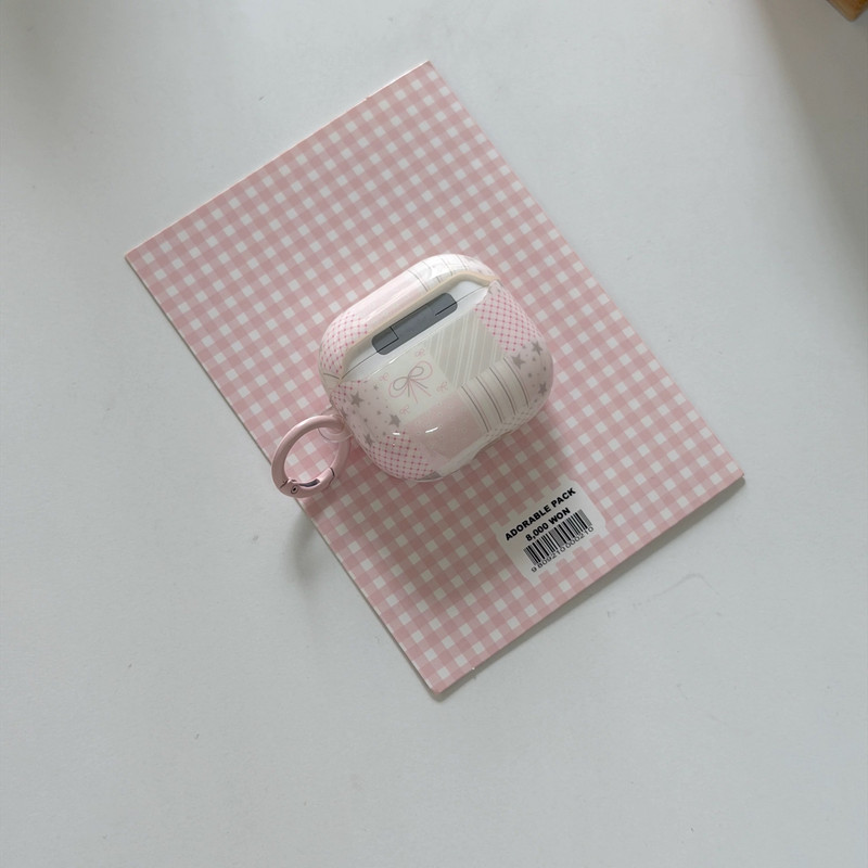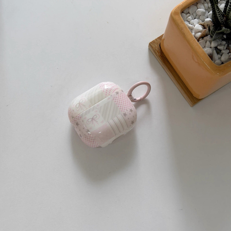 ピンクパッチワークリボンストラップ AirPodsケース