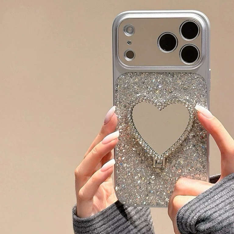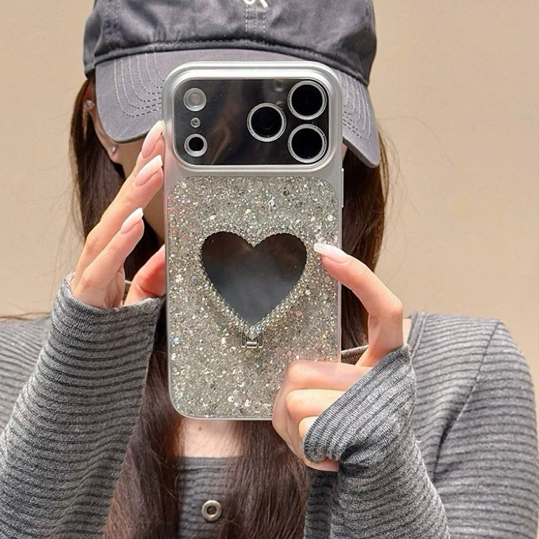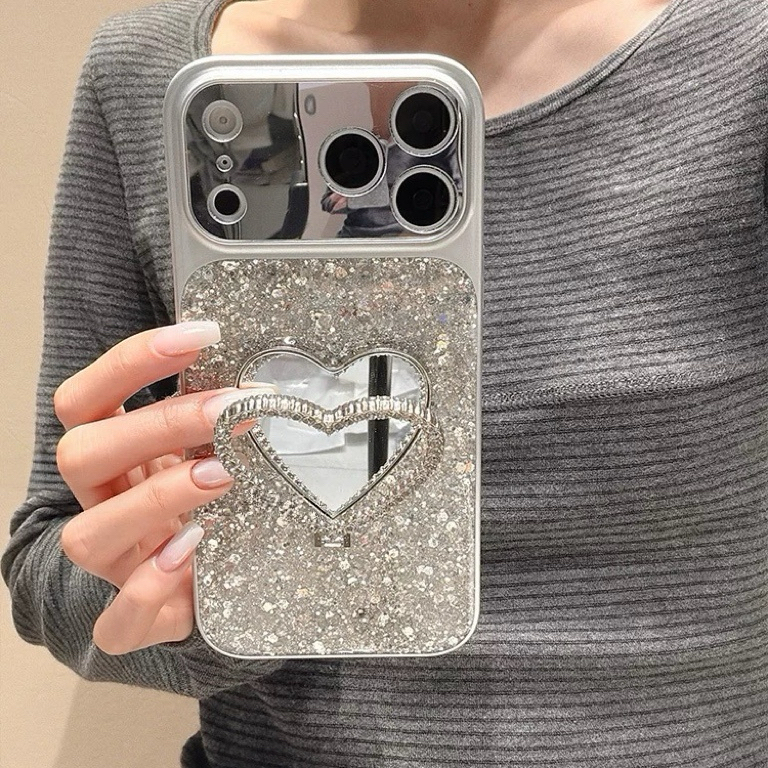 Glitter heart mirror stand iphoneケース