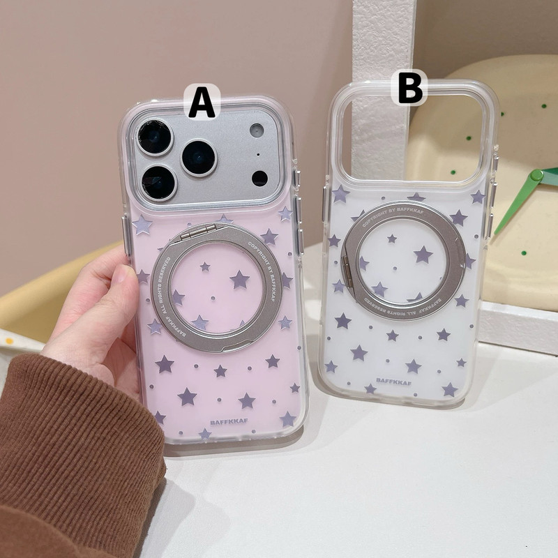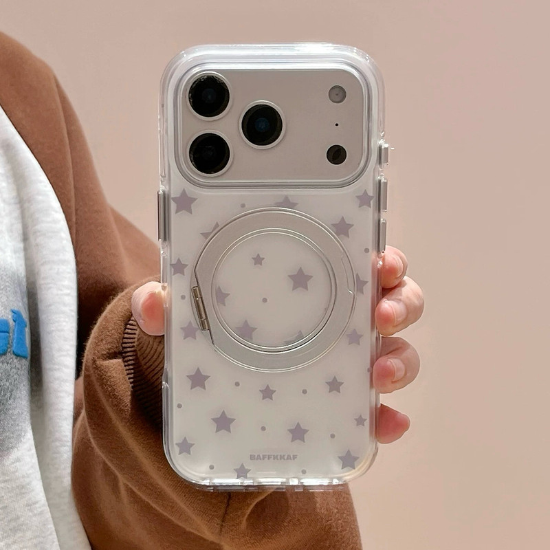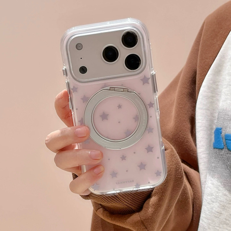 Silver star white pink magsafe stand iphoneケース【Magsafe対応】
