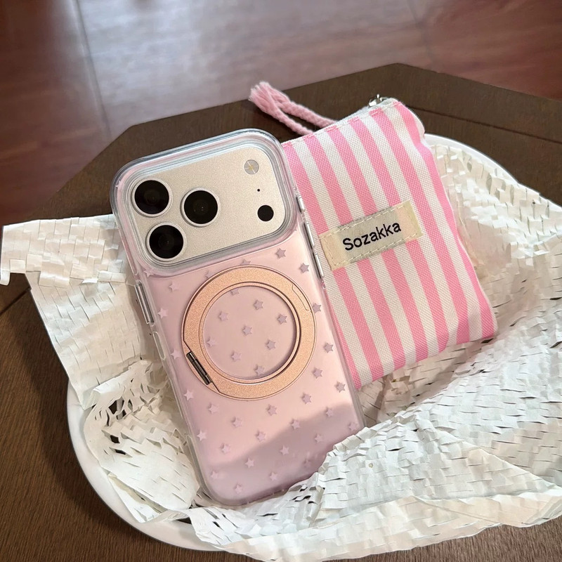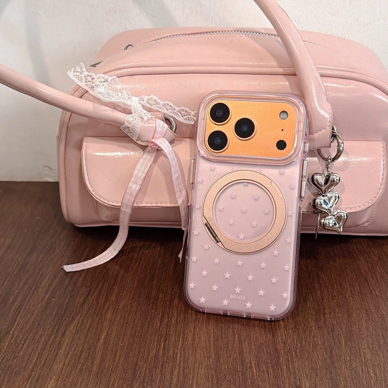 Pink star magsafe stand iphoneケース【Magsafe対応】