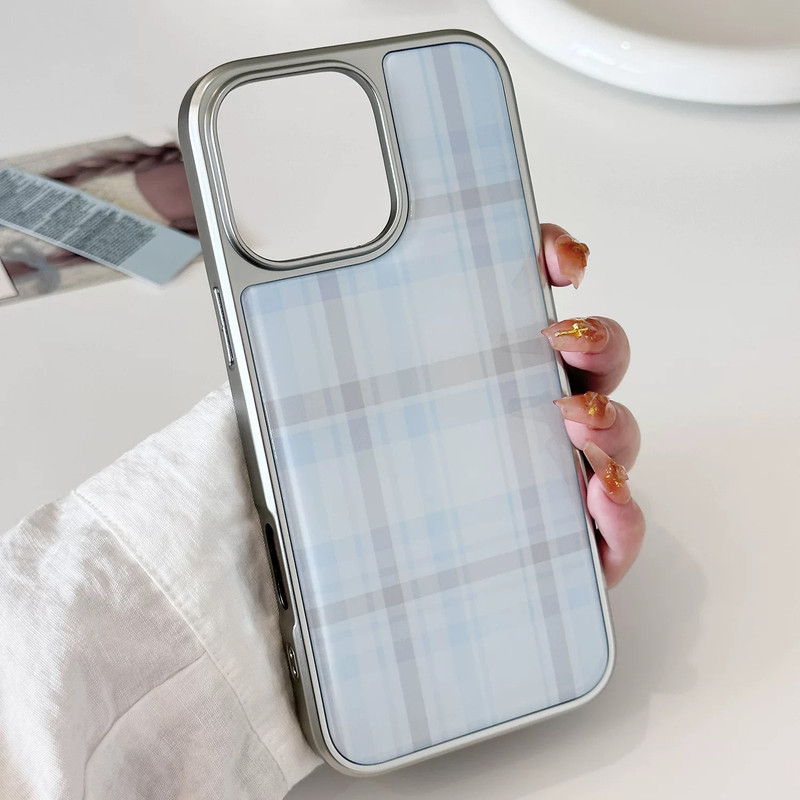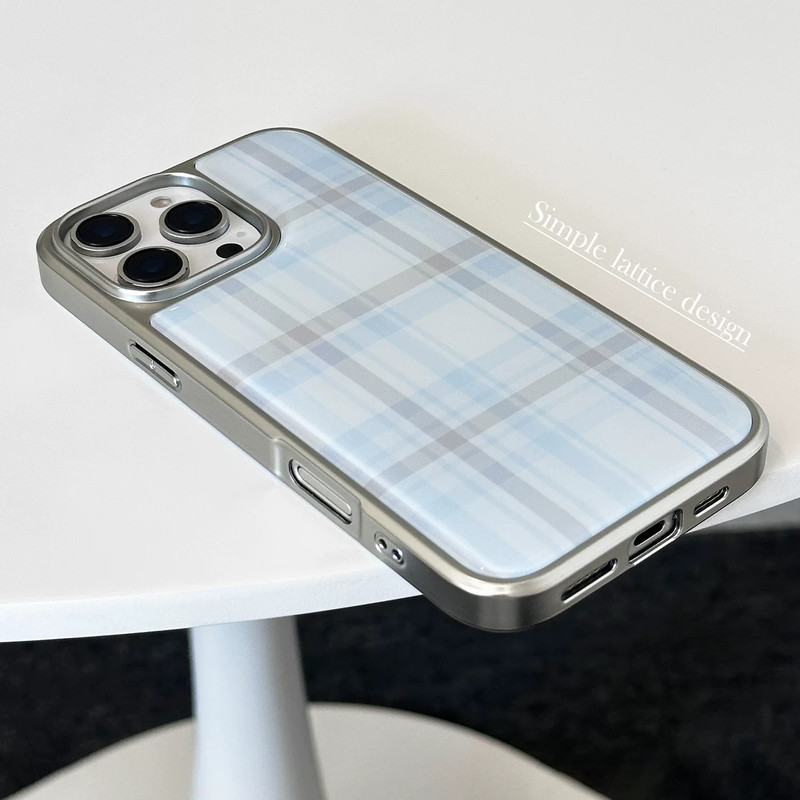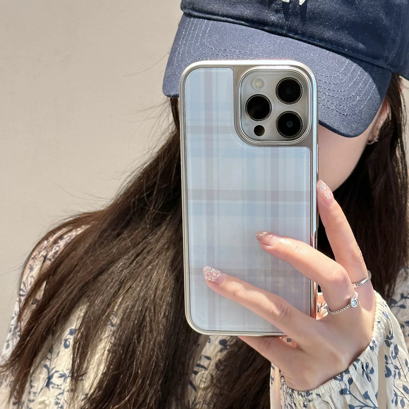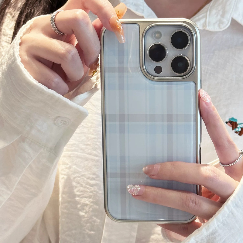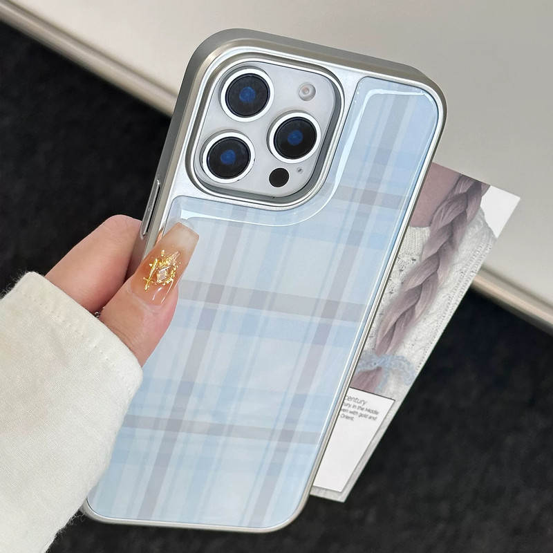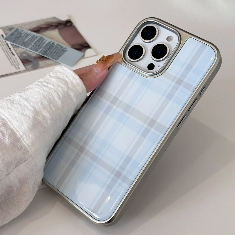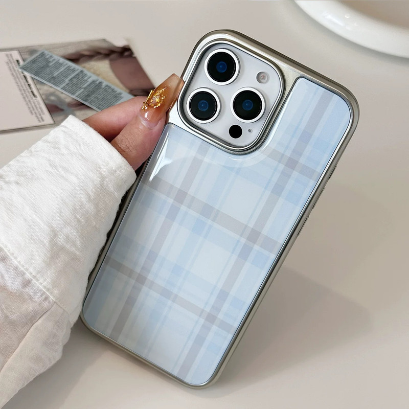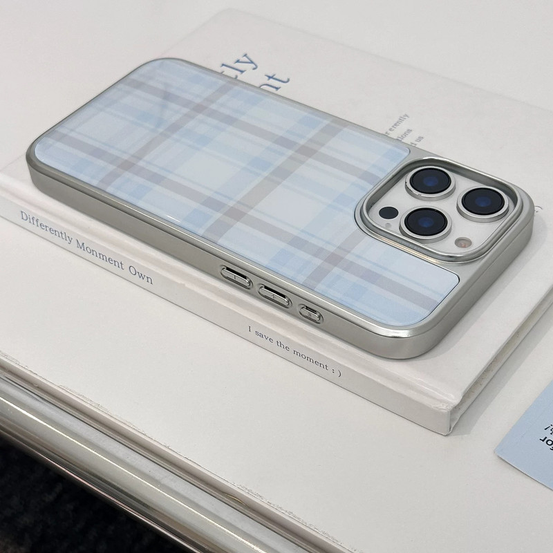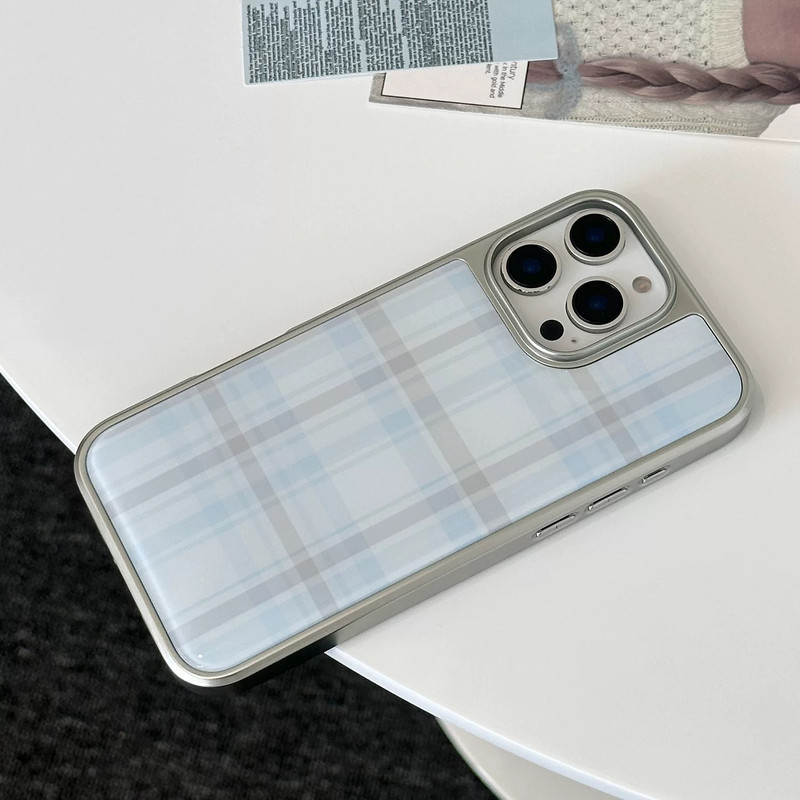 韓国ムードのブルーグレーチェック柄ケース🎀