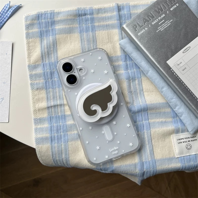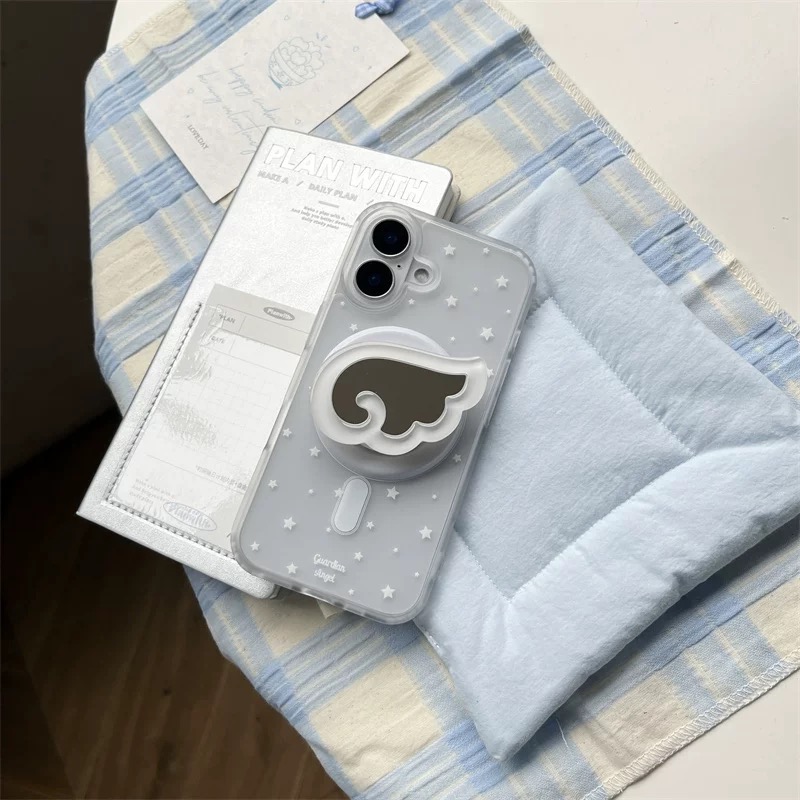 Magsafe対応の可愛くて実用的なエンジェルミラースマホトック🪽🪞🤍ちょっとしたお化粧直しや口元チェックにも便利✨Magsafe対応のケース/グリップがセット💘
