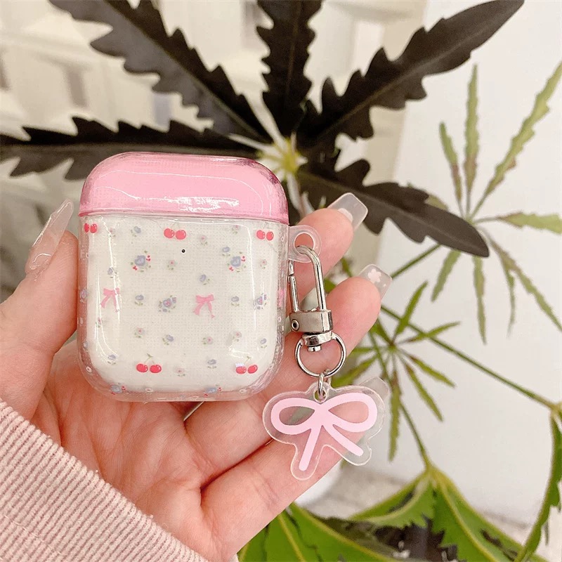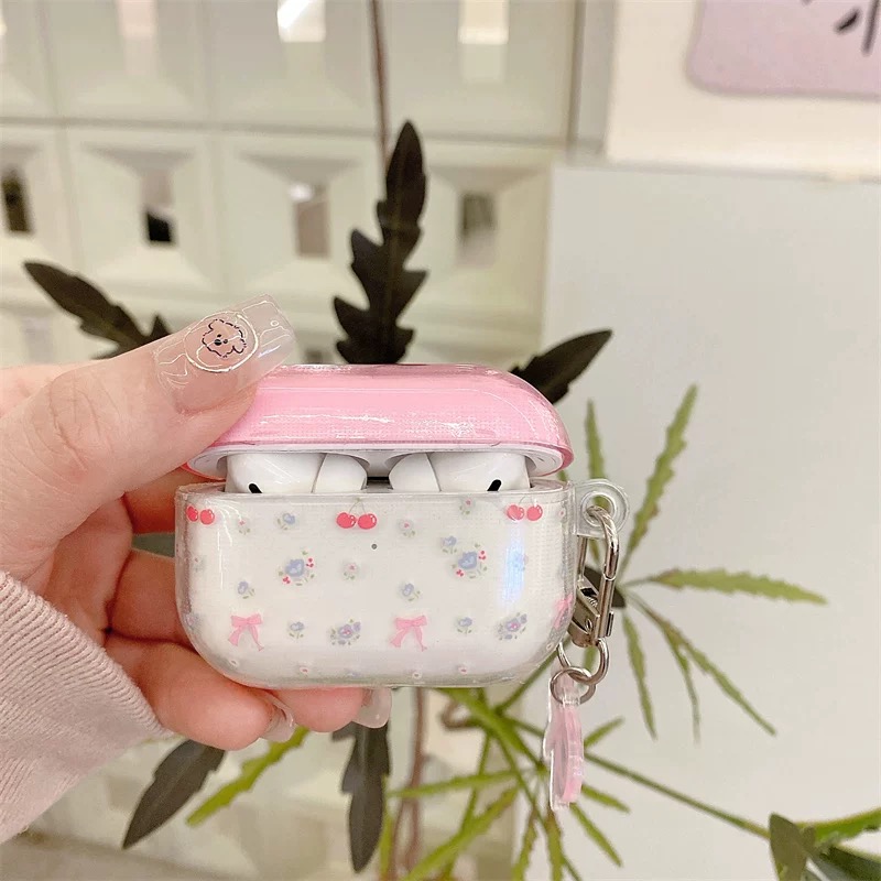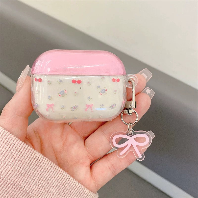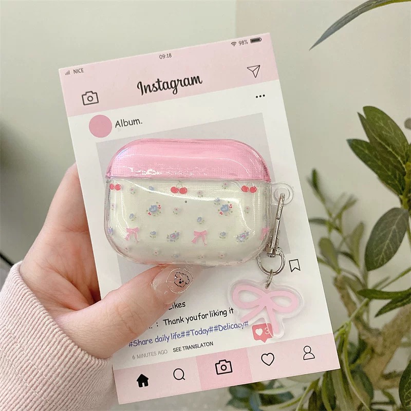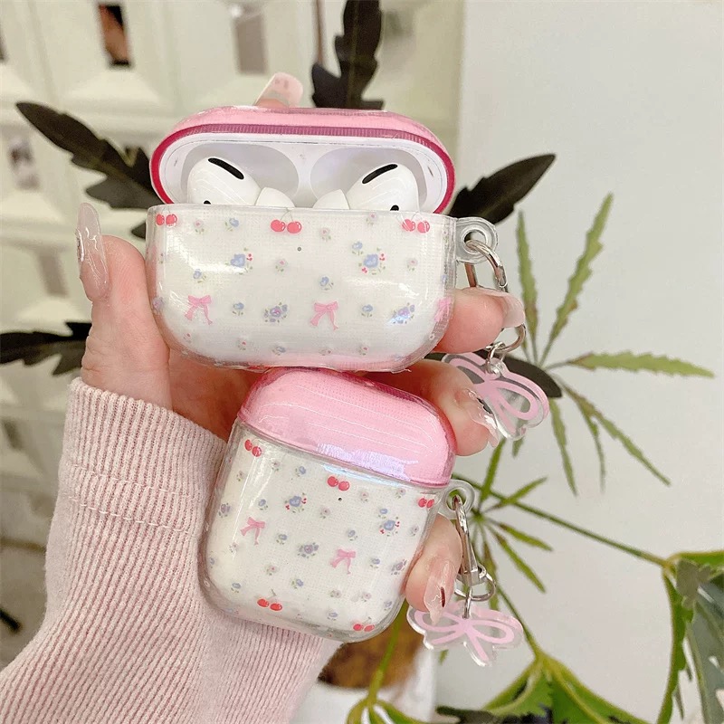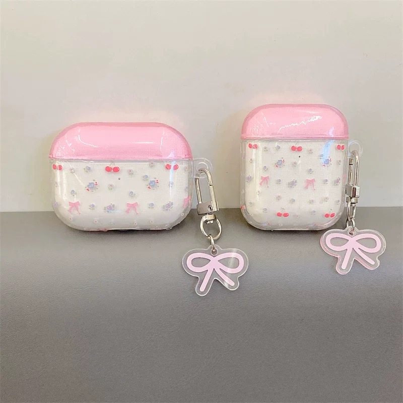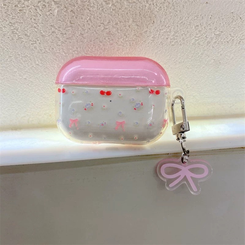 Pink clear ribbon strap airpodsケース