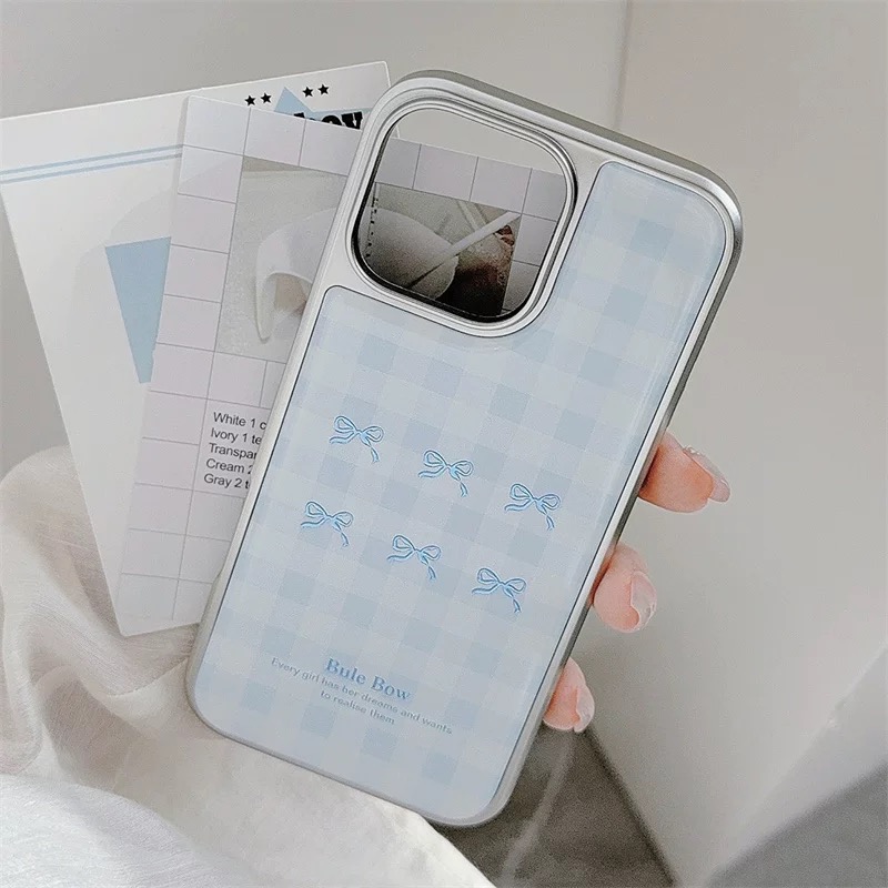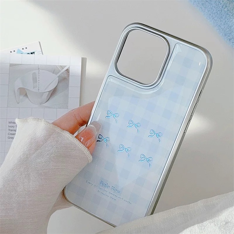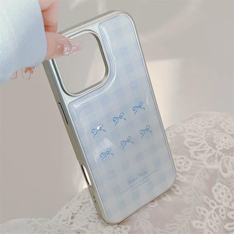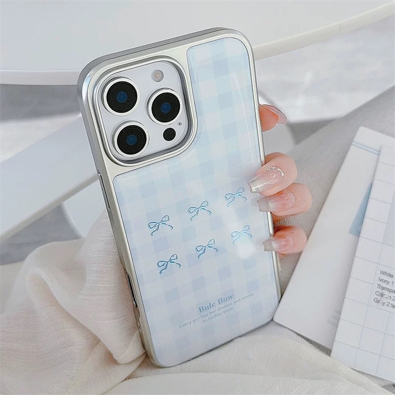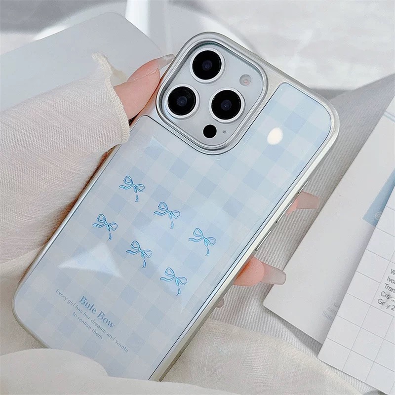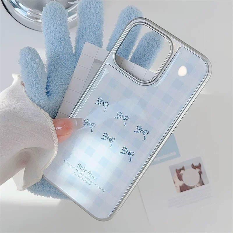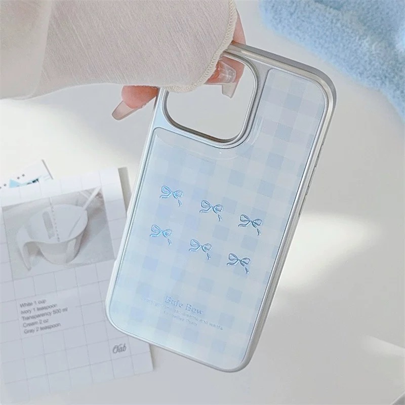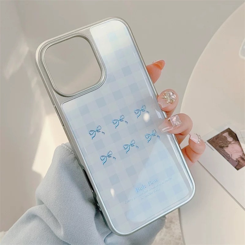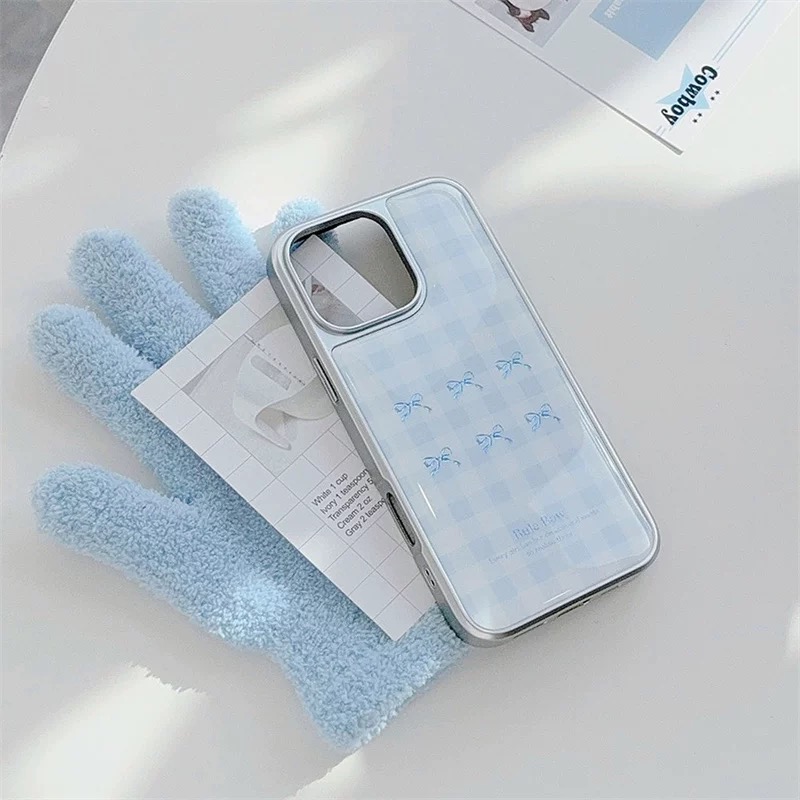 韓国ムードのブルーチェックリボン柄ケース🎀