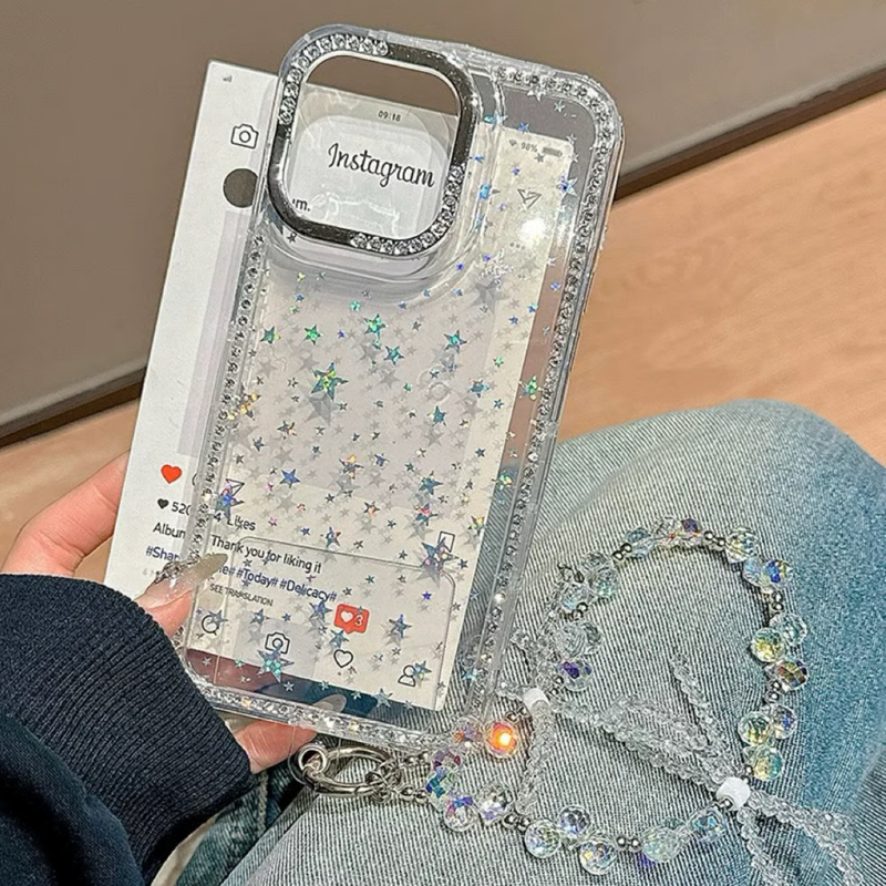 角度によって色が変わるきらきら星柄ケース🌟