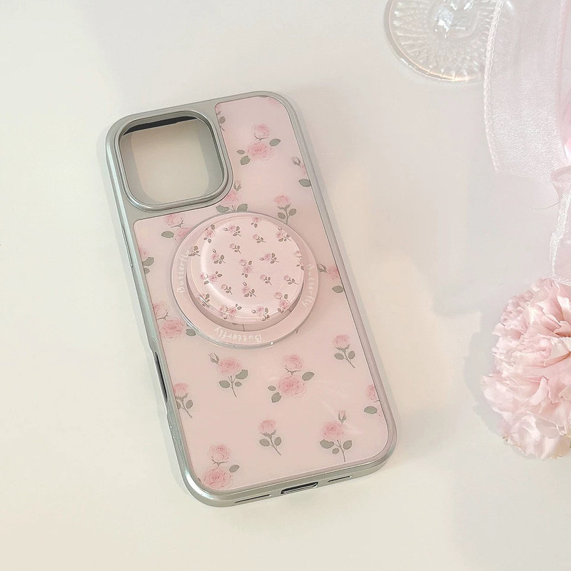 Petite pink flower magsafe grip iphoneケース 【Magsafe対応】