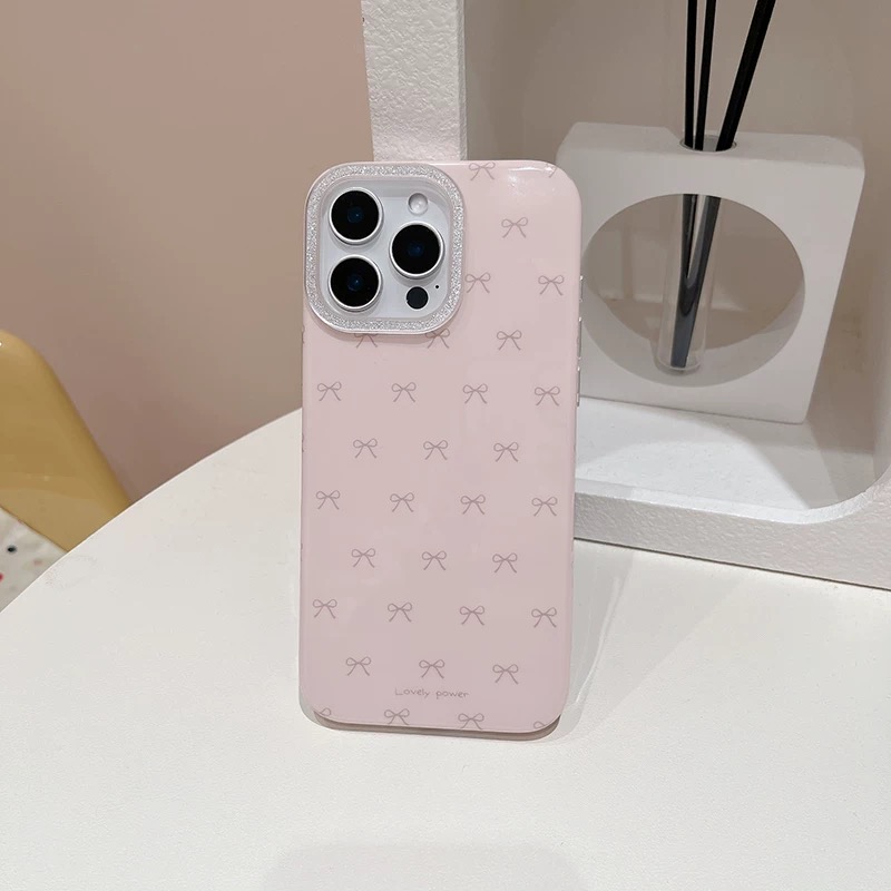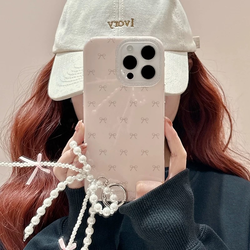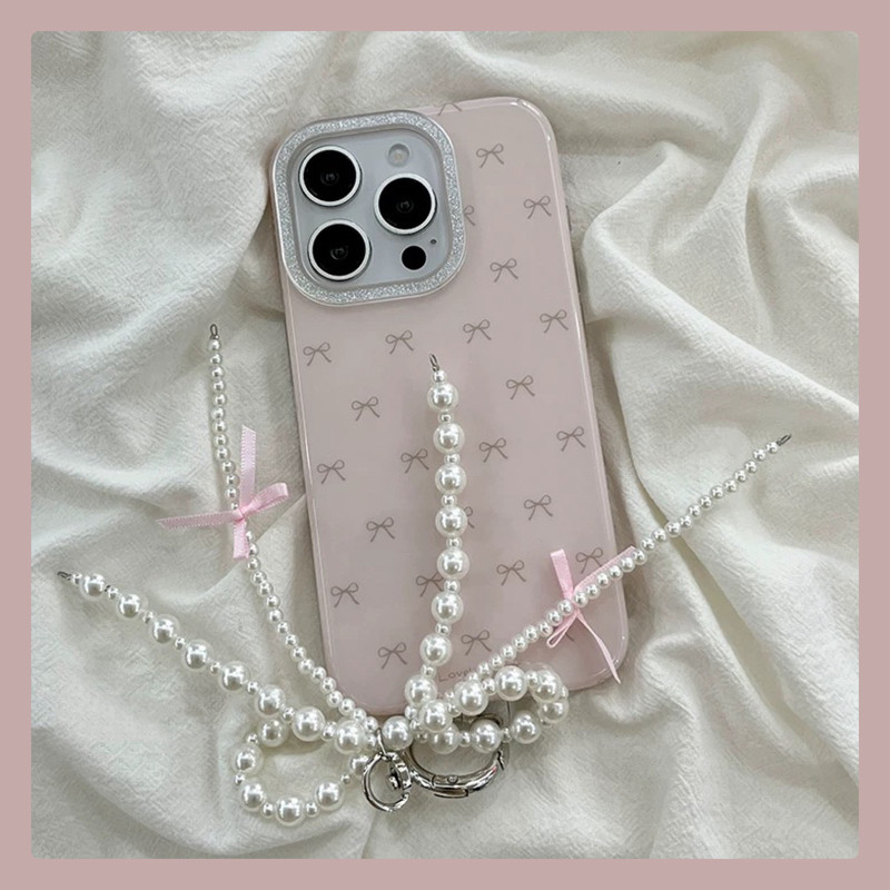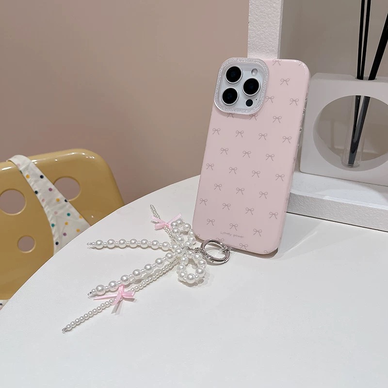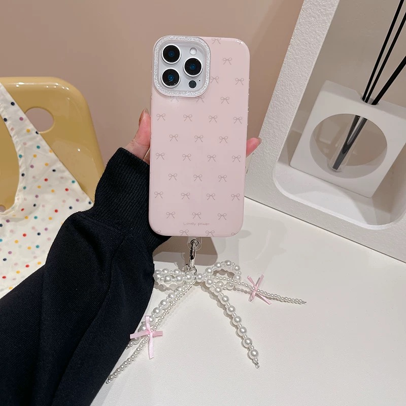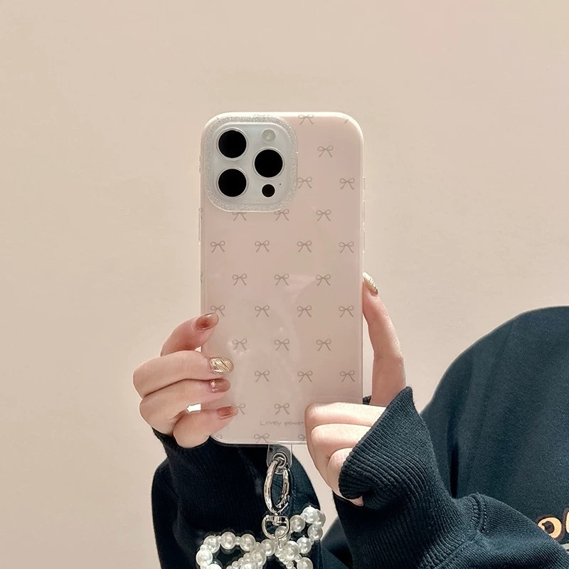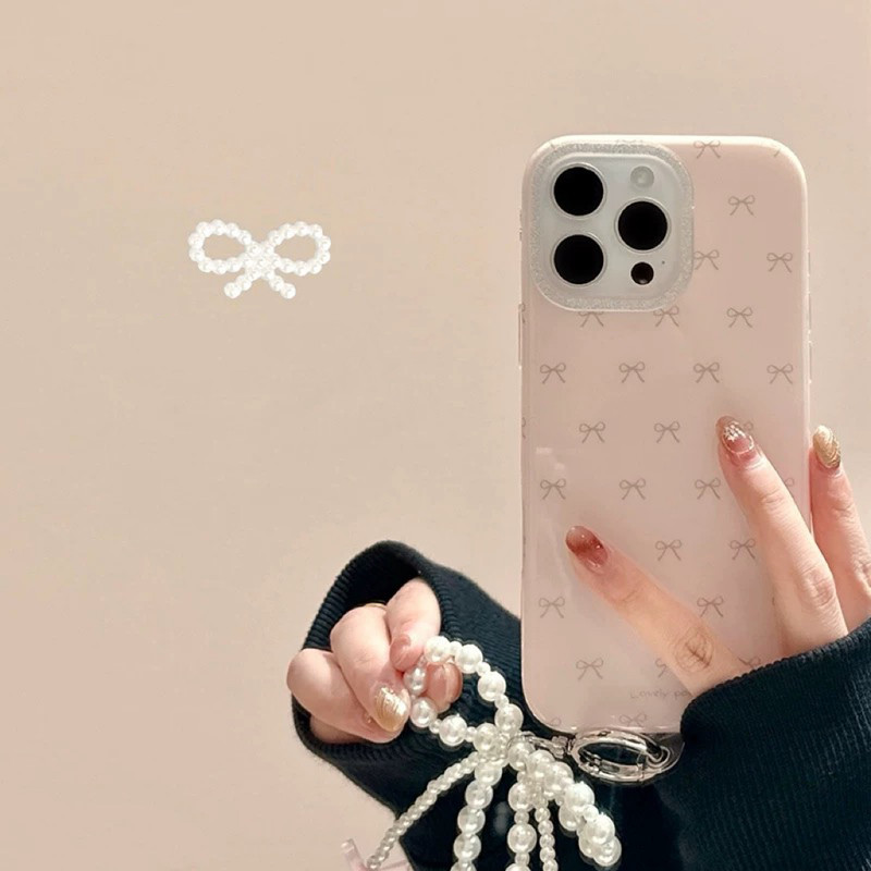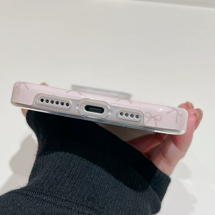 韓国ムードでガーリー可愛い淡いピンクリボン柄ケース🎀