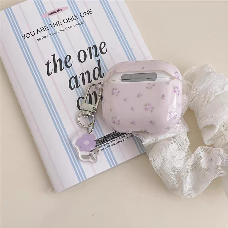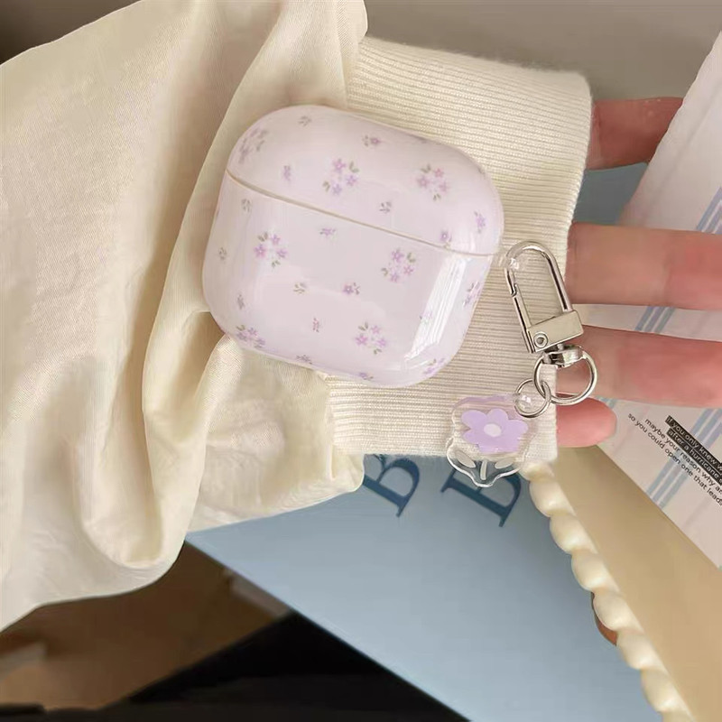 Little purple flower strap airpodsケース