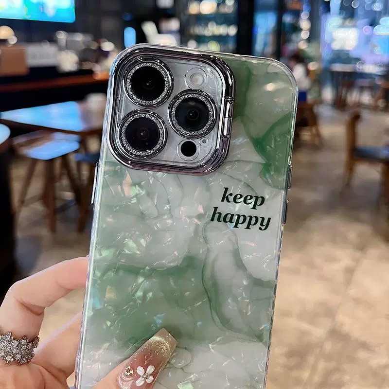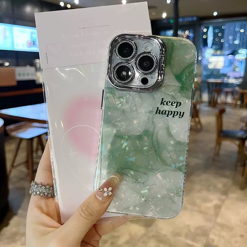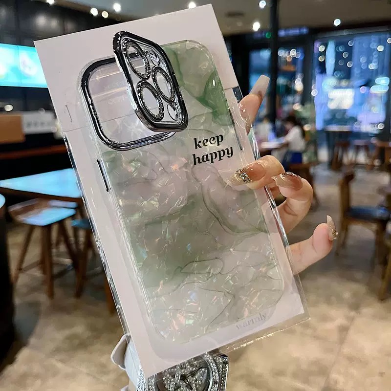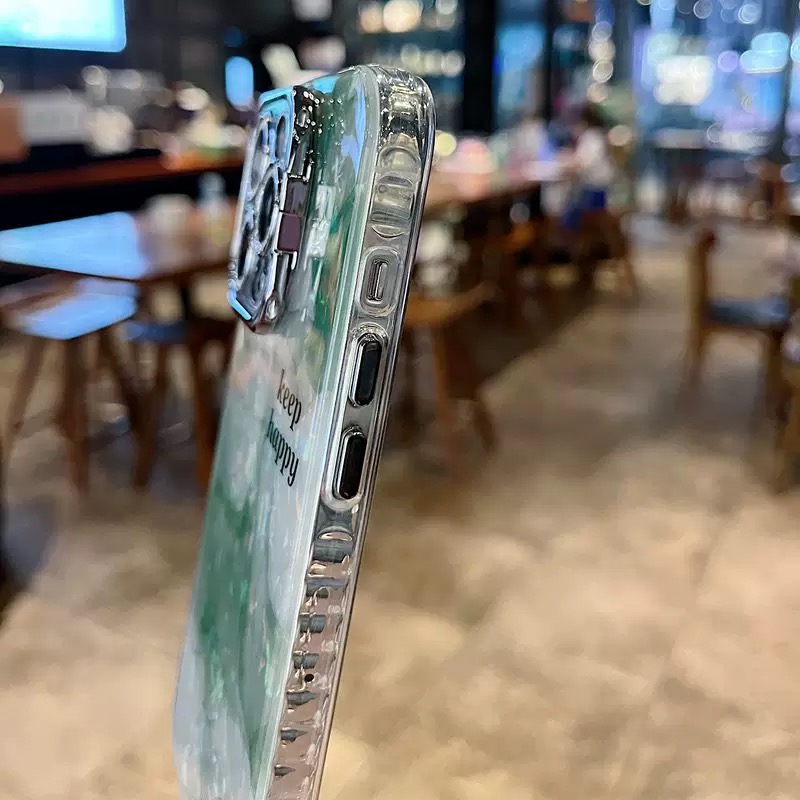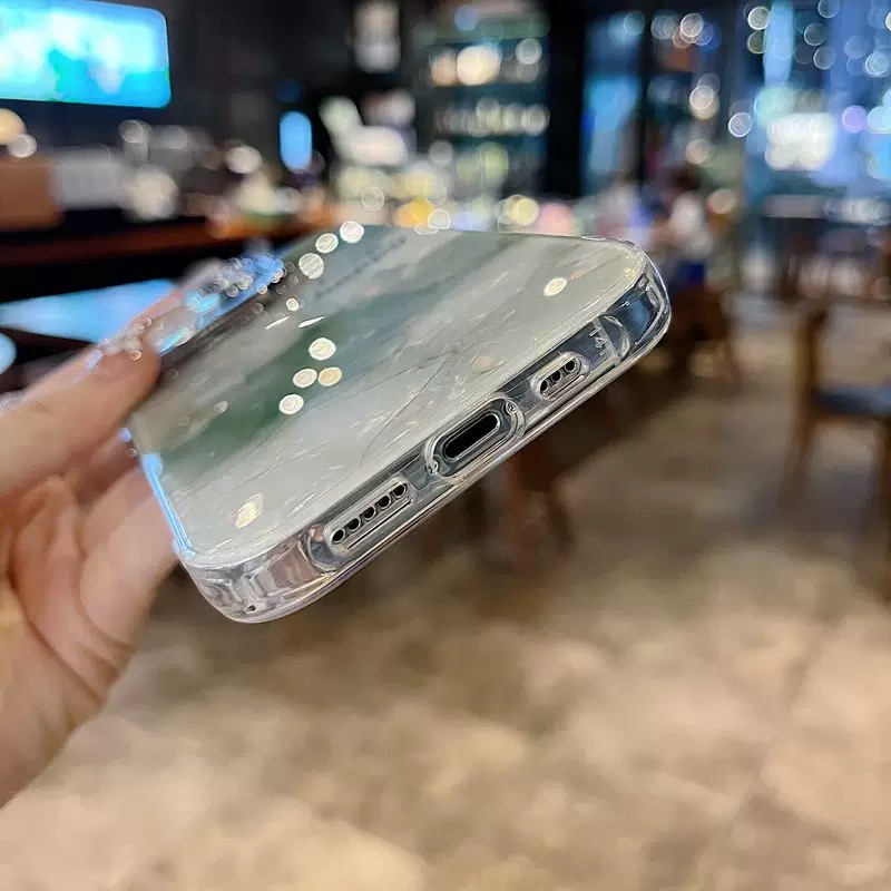 落ち着いた雰囲気のグリーンマーブル柄ケース💚