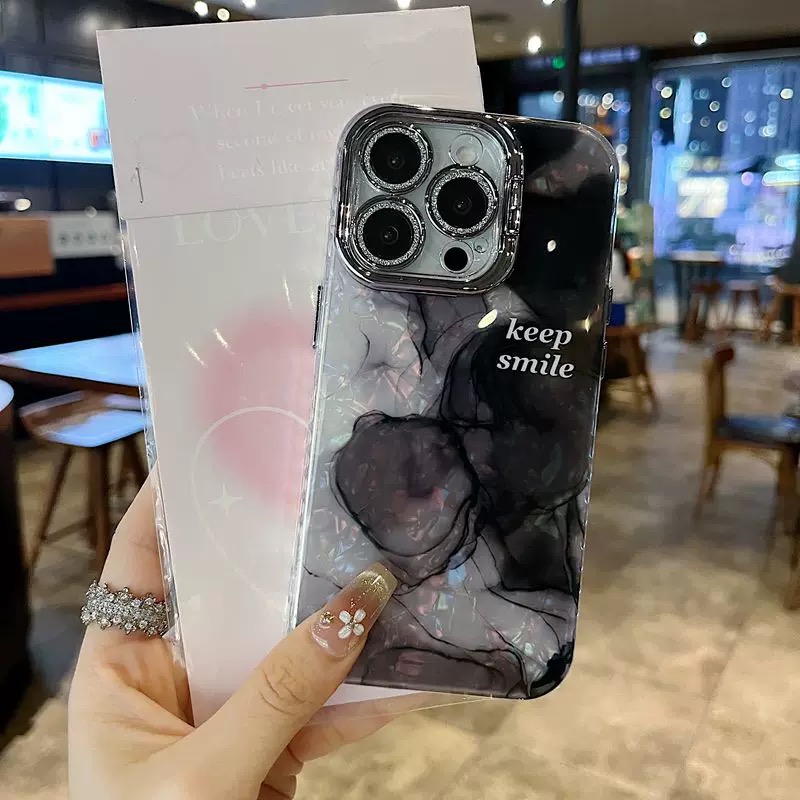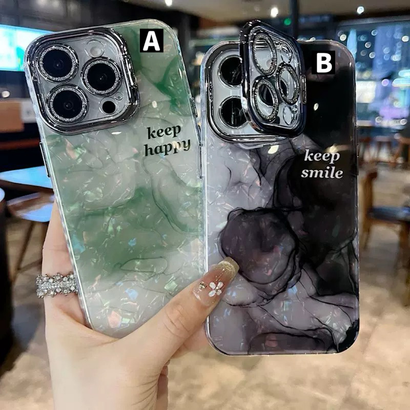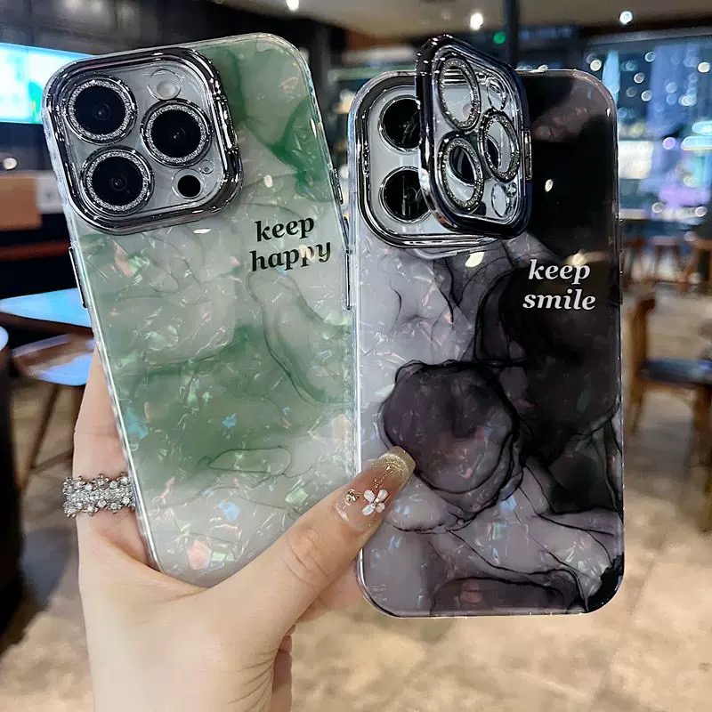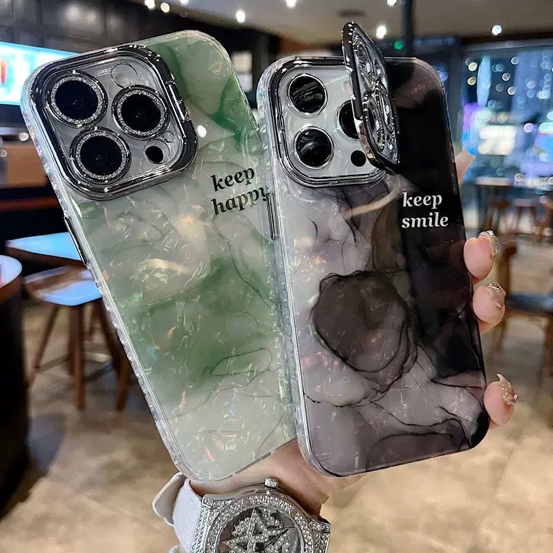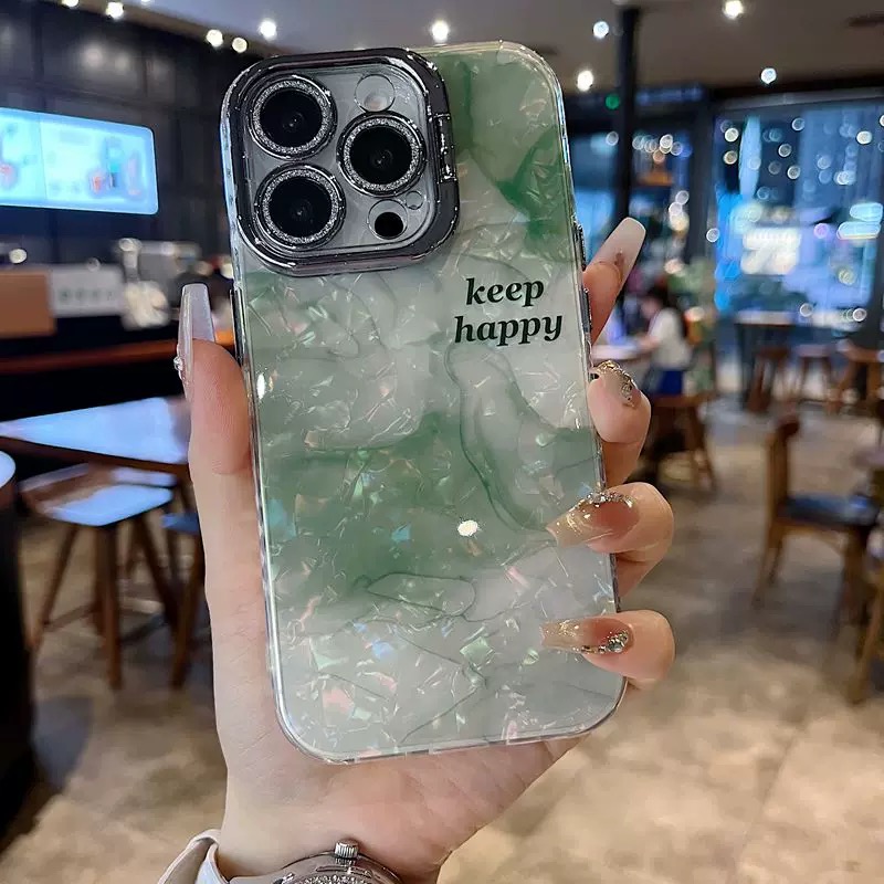 落ち着いた雰囲気のグリーンマーブル柄ケース💚