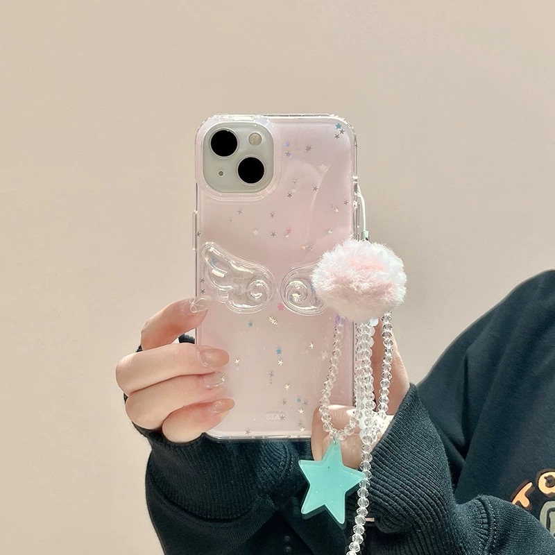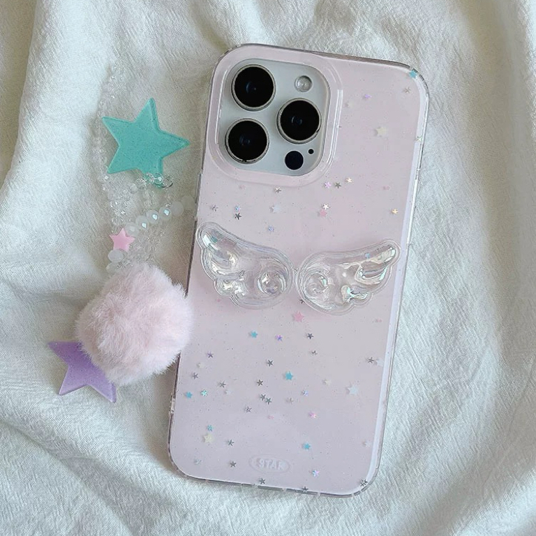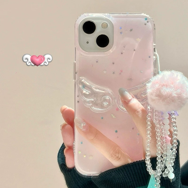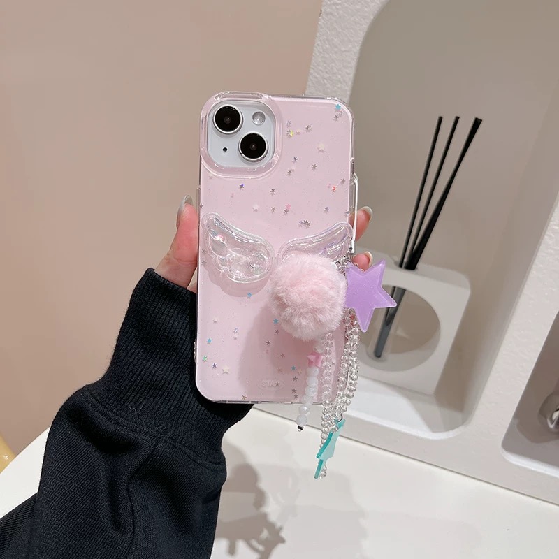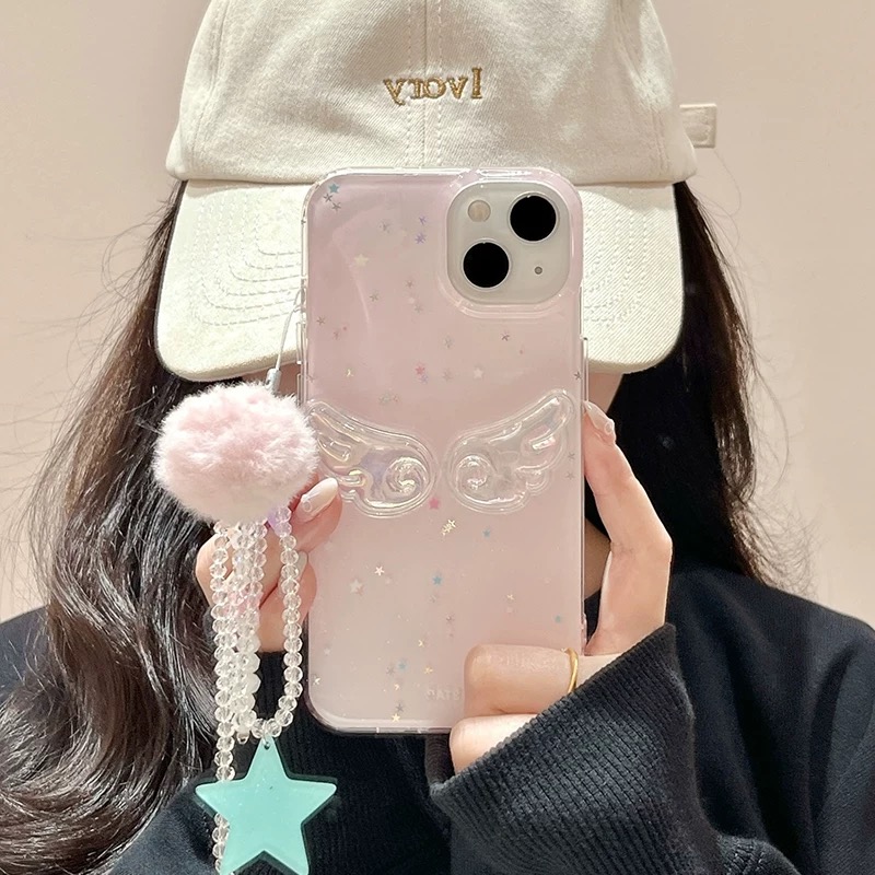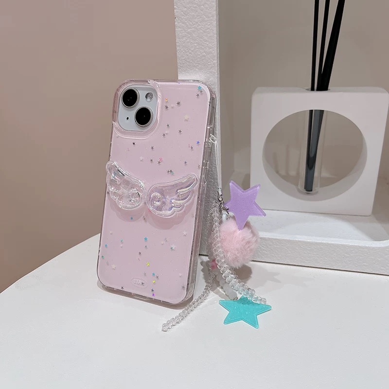 Pink wing glitter strap iphoneケース