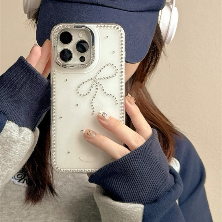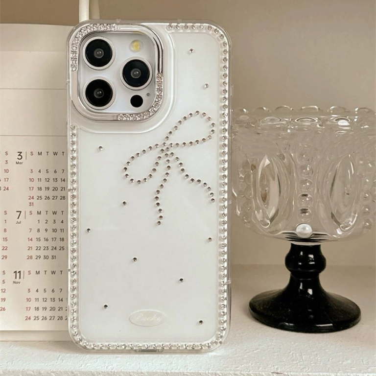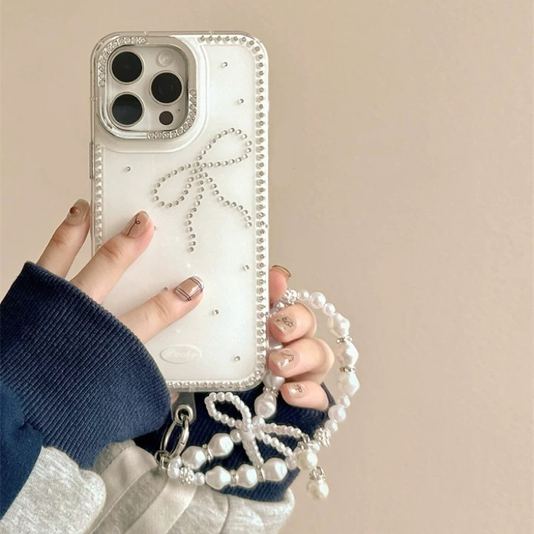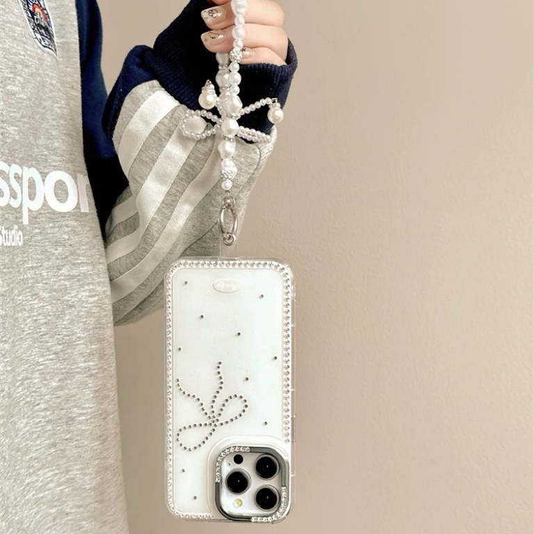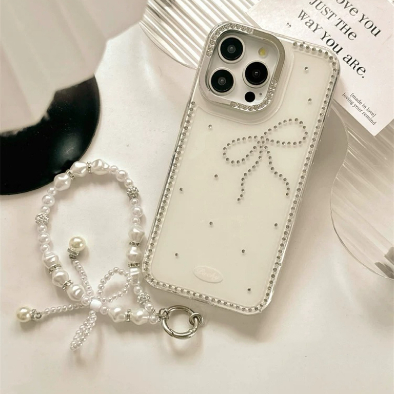 ワンリボンホワイトパールストラップ付き iphoneケース
