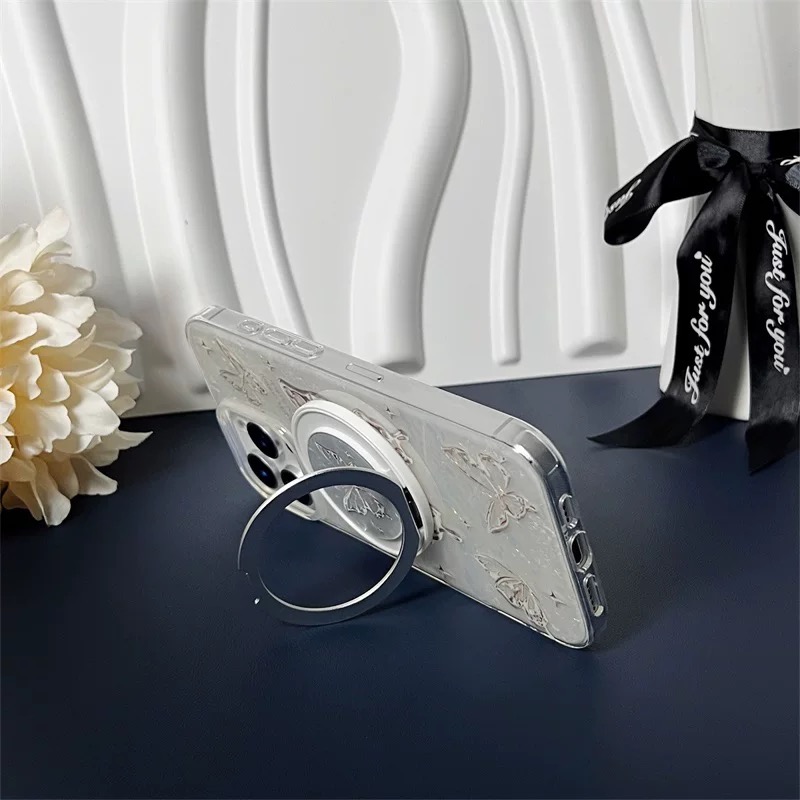 蝶々オーロラmagsafe スタンド iphoneケース 【Magsafe対応】