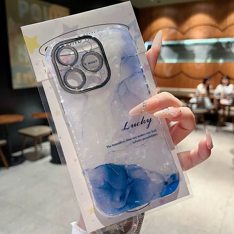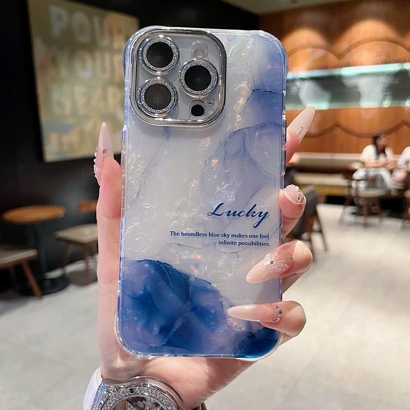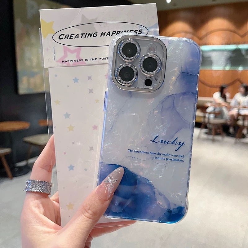 Blue pink aurora marble iphoneケース