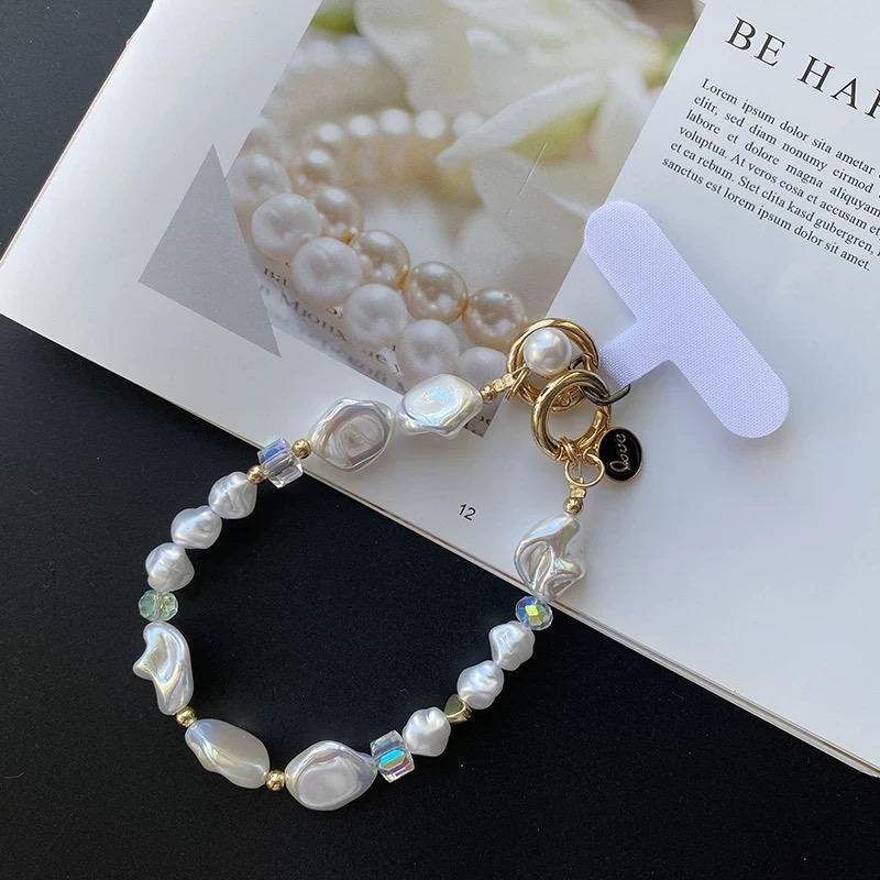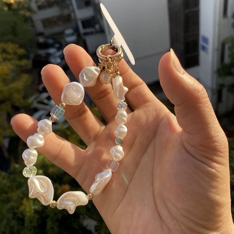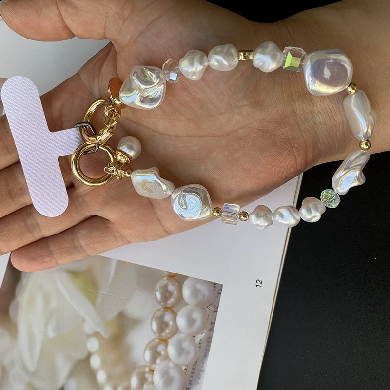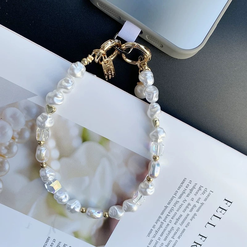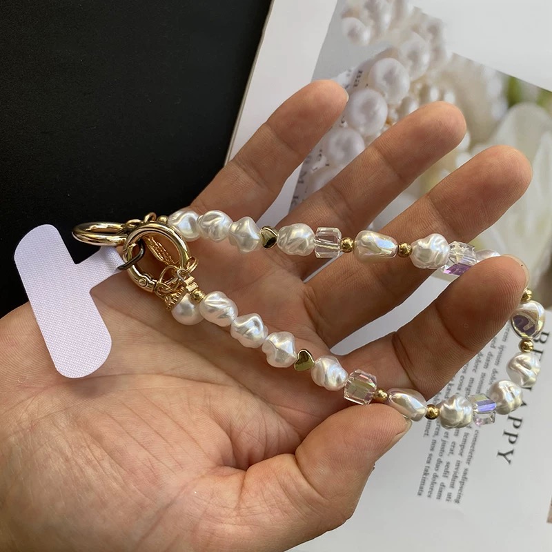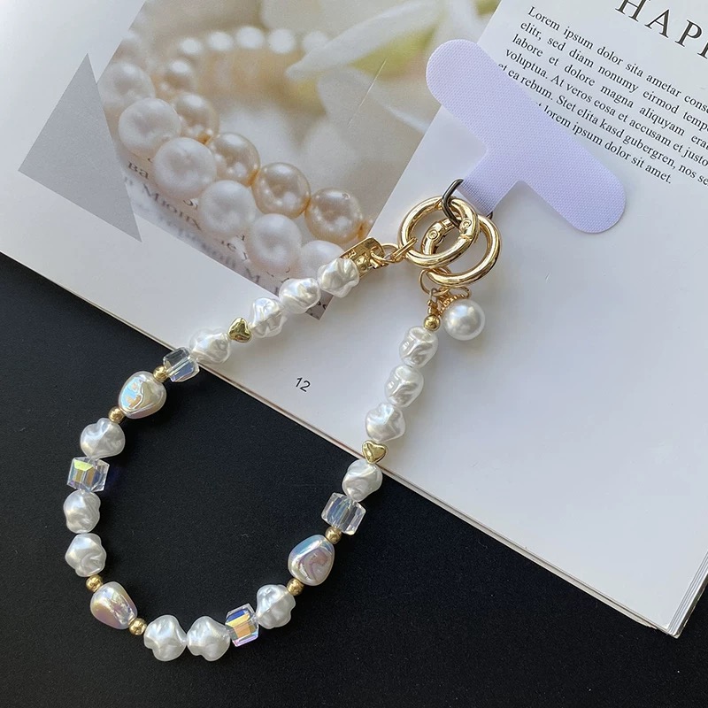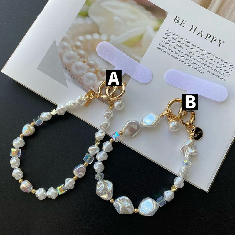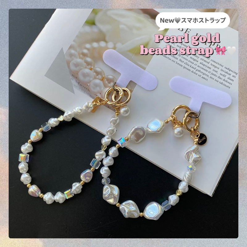 Pearl gold beads strap スマホストラップ