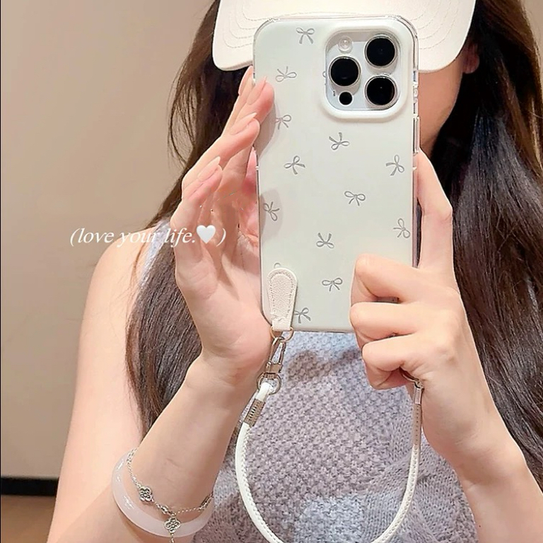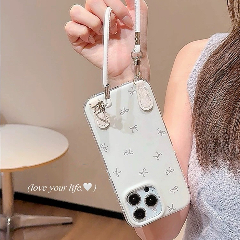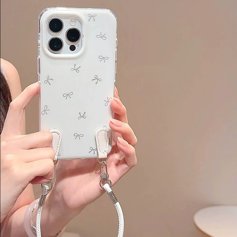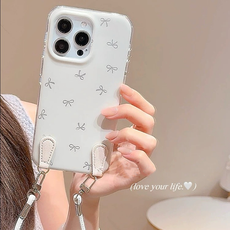 リボン柄ホワイトストラップ iphoneケース