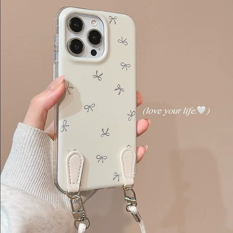 Ribbon pattern white strap iphoneケース