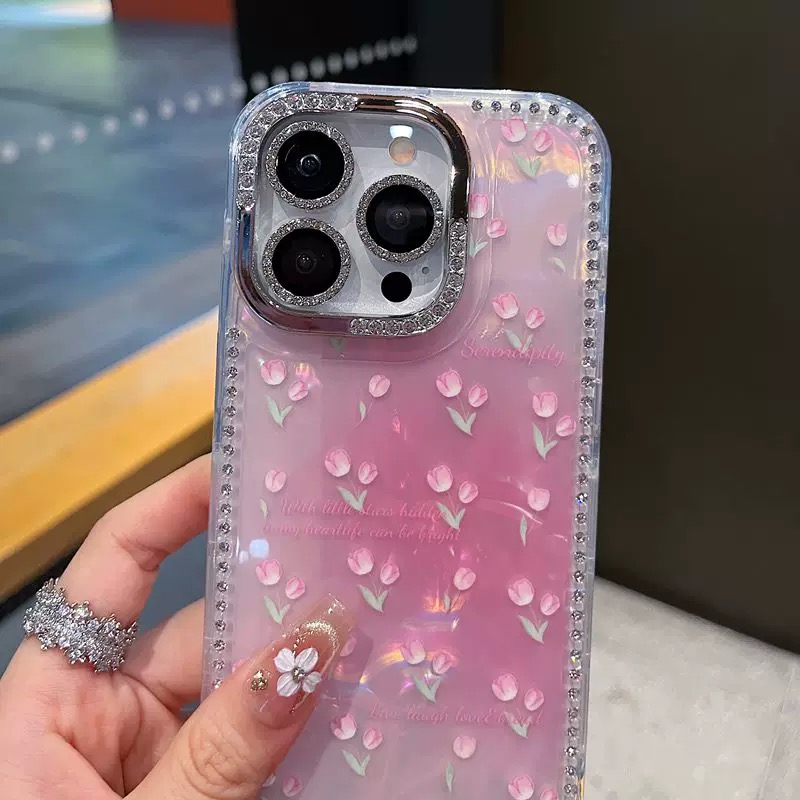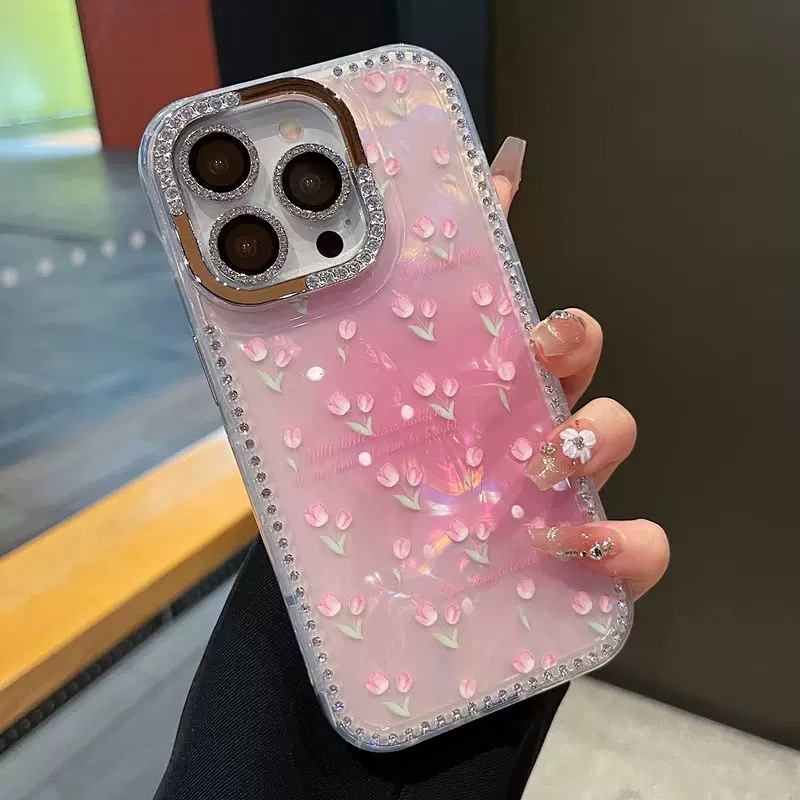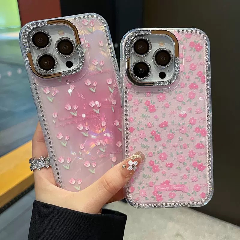 きらきら春らしいピンクフラワーケース🌷