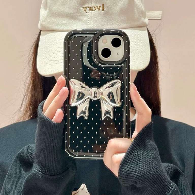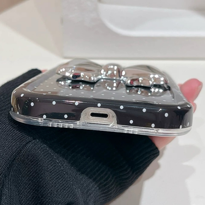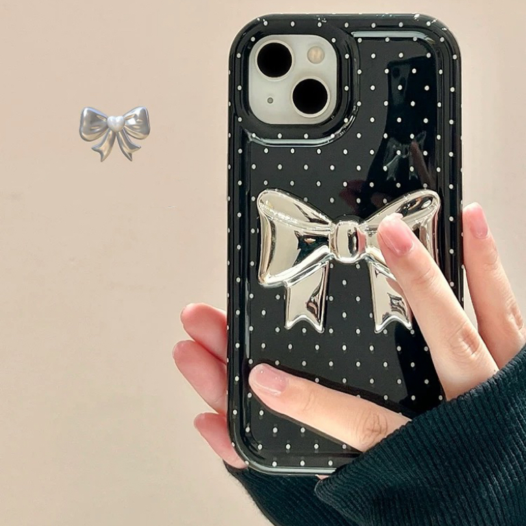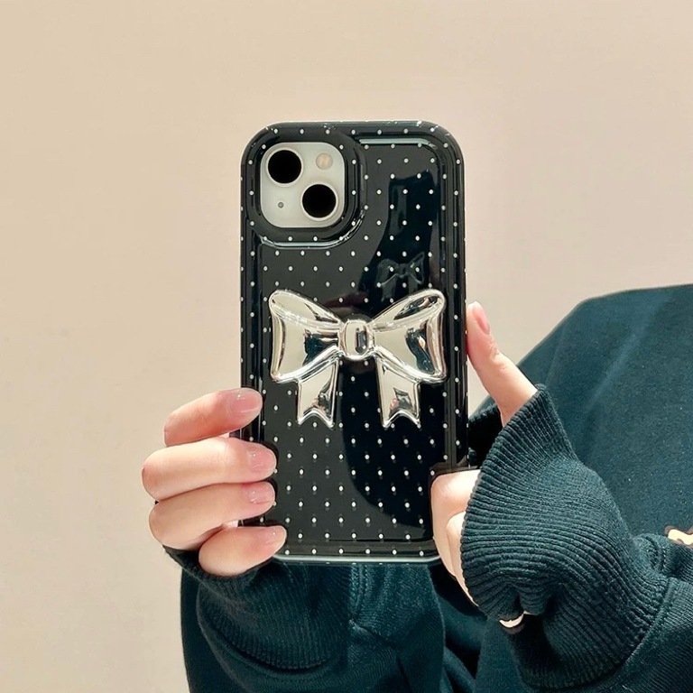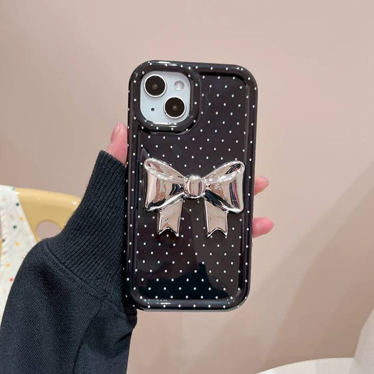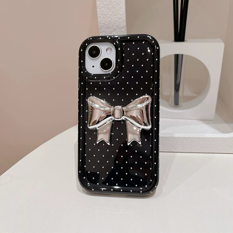 ブラックドットシルバーリボン iphoneケース