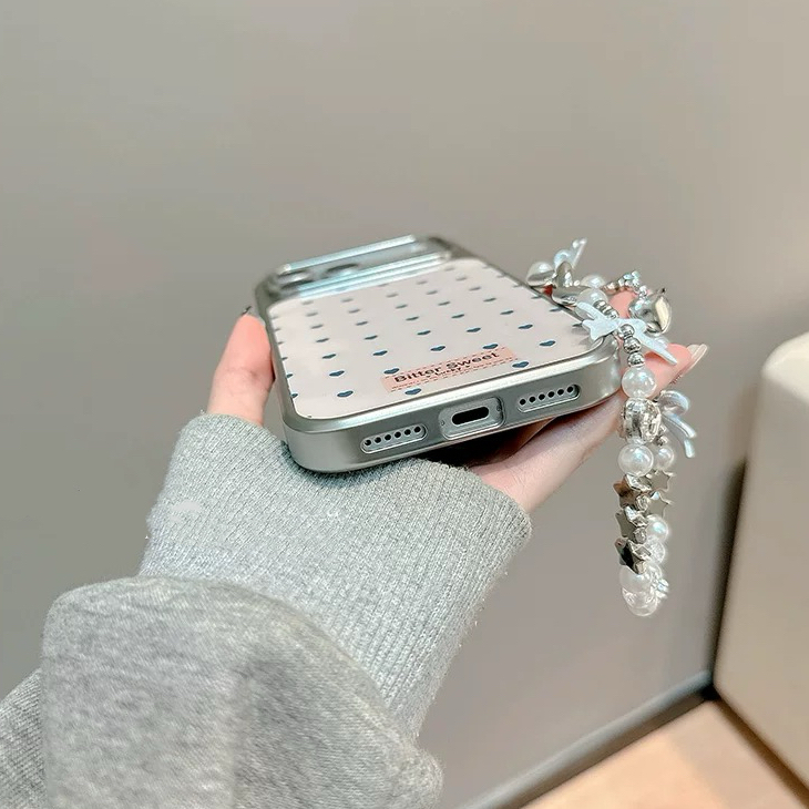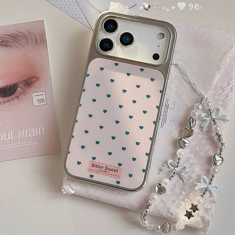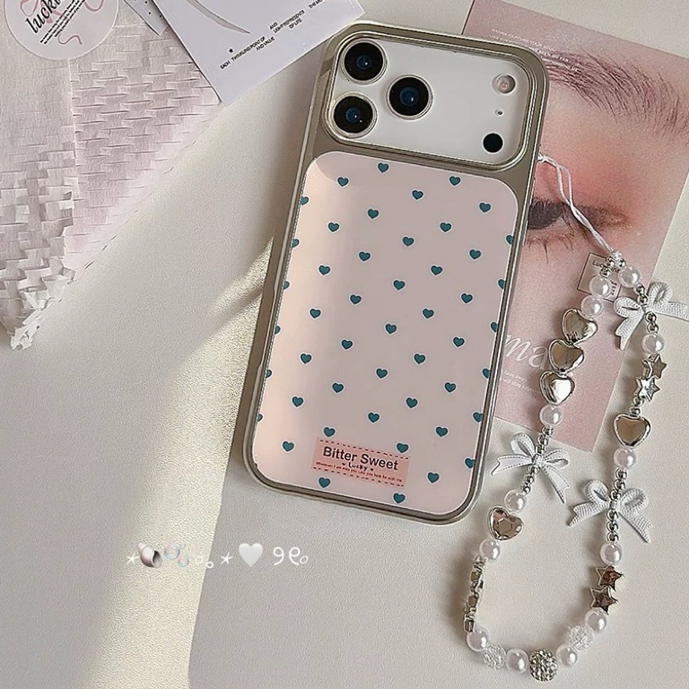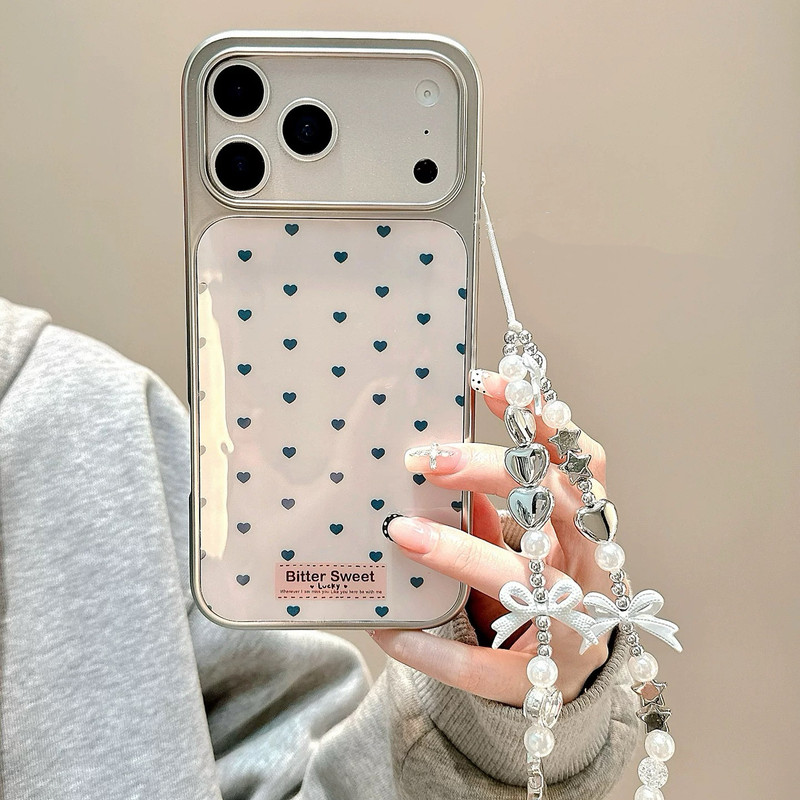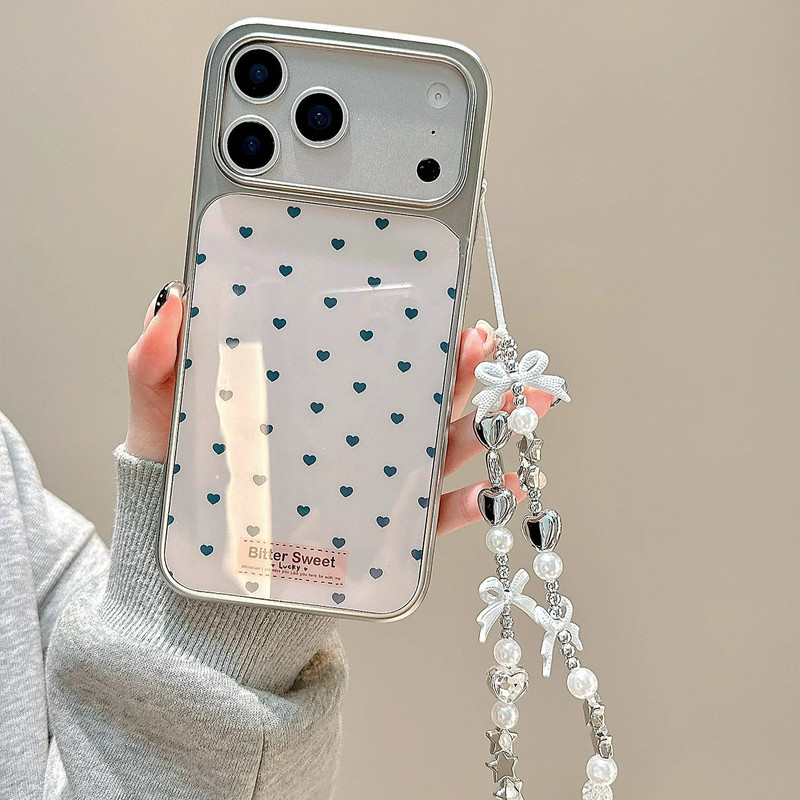 Heart pattern silver side strap iphoneケース