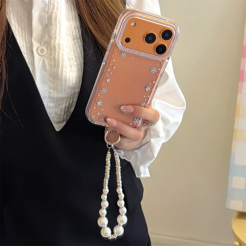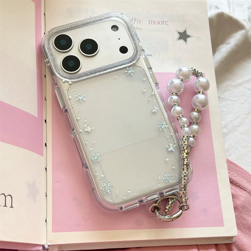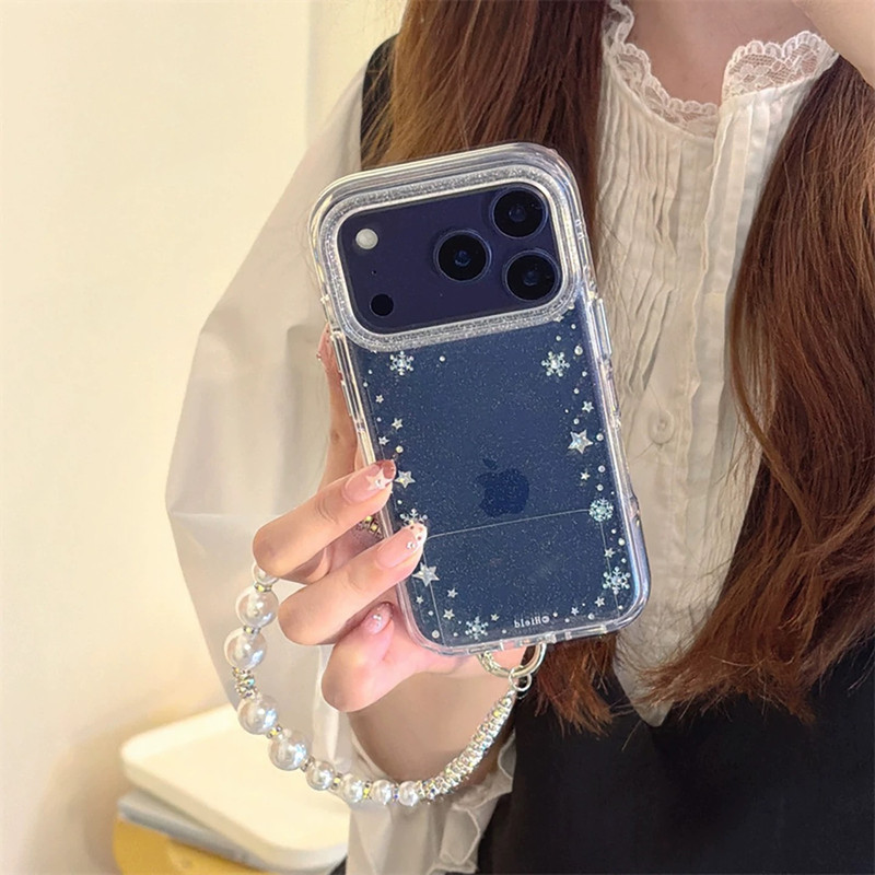 Snowflake clear glitter strap iphoneケース