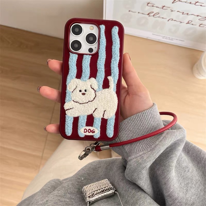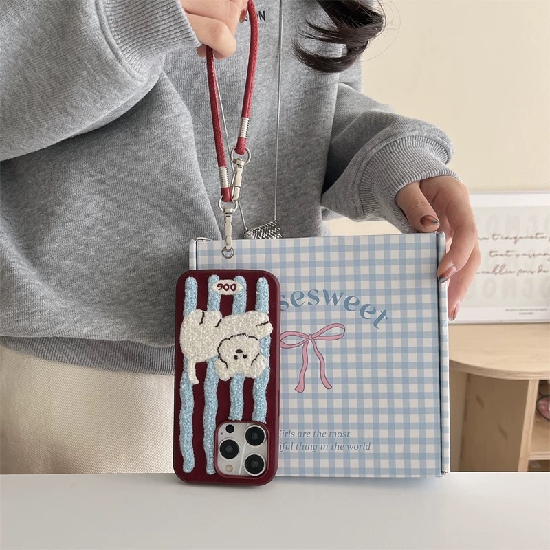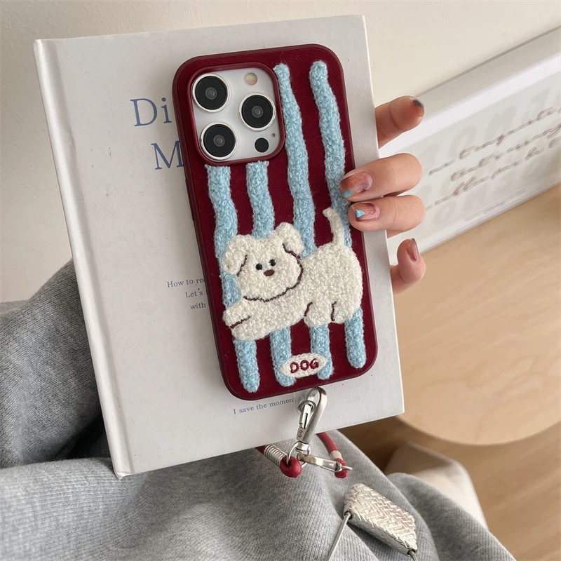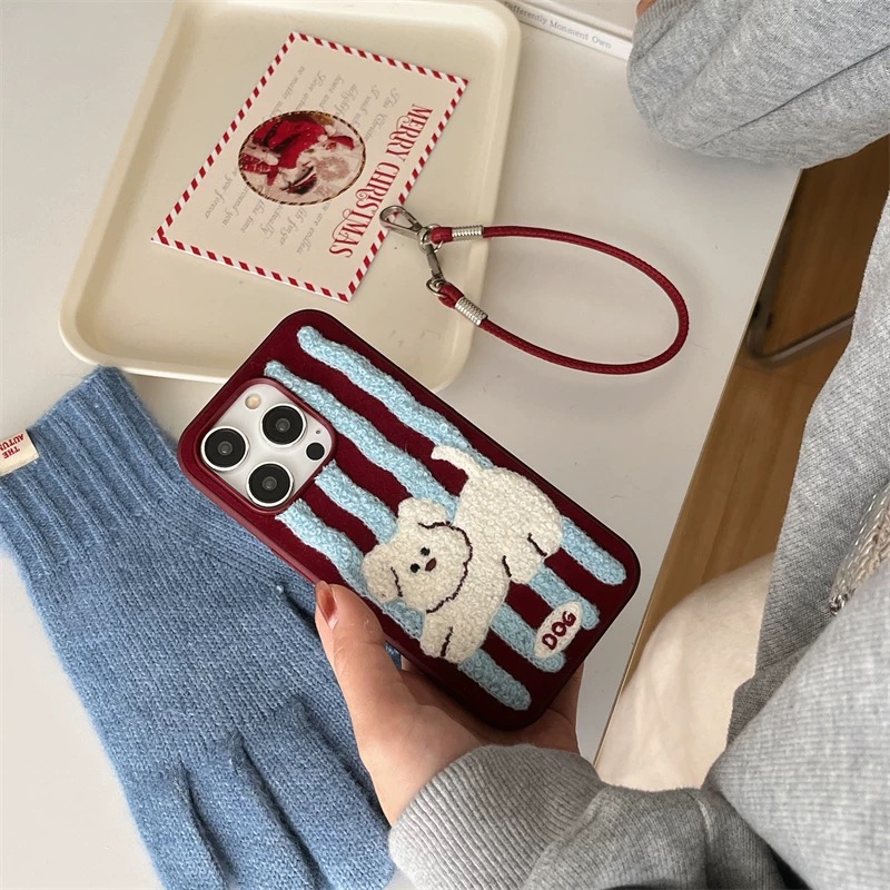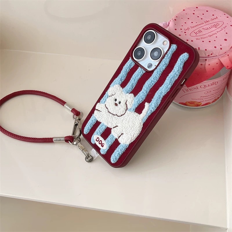 ストライプワンちゃんブラウンストラップ iphoneケース