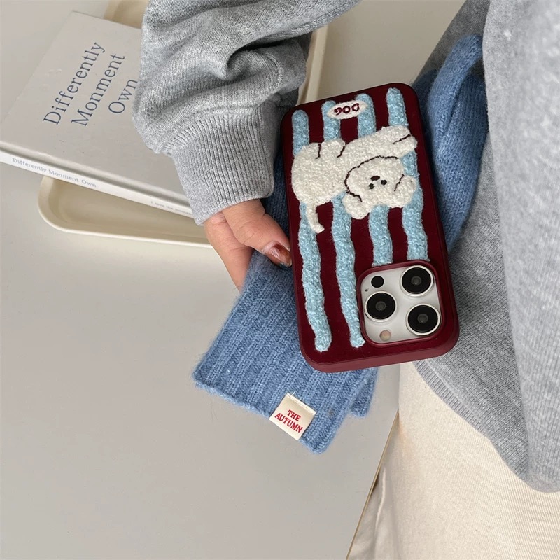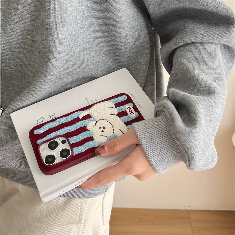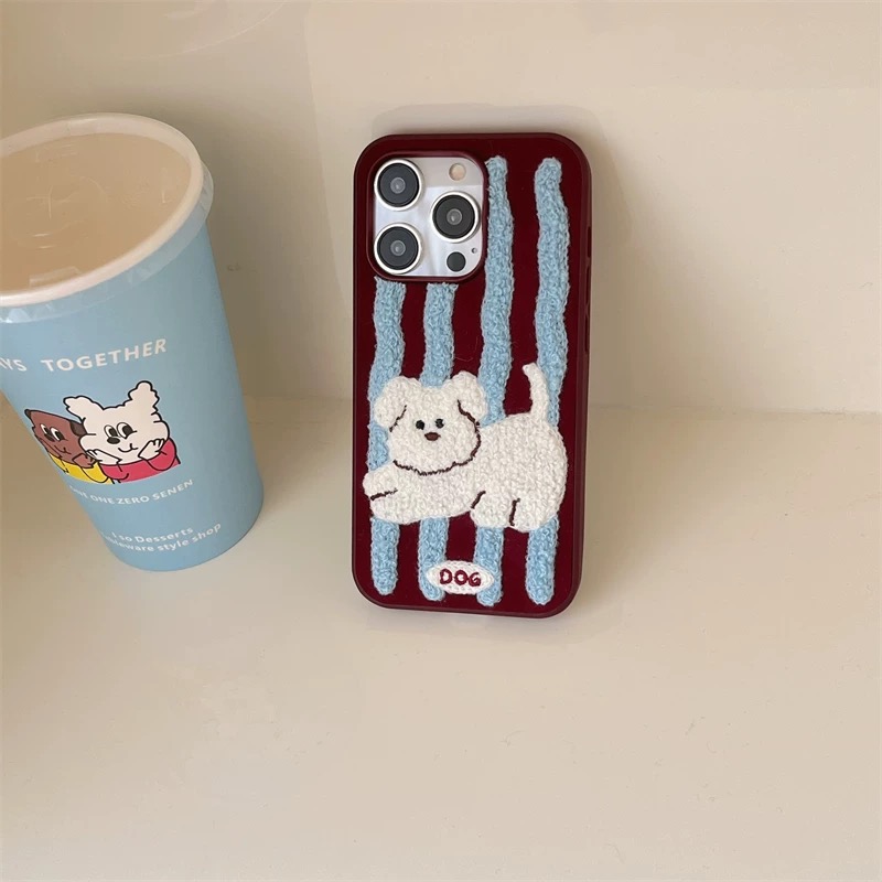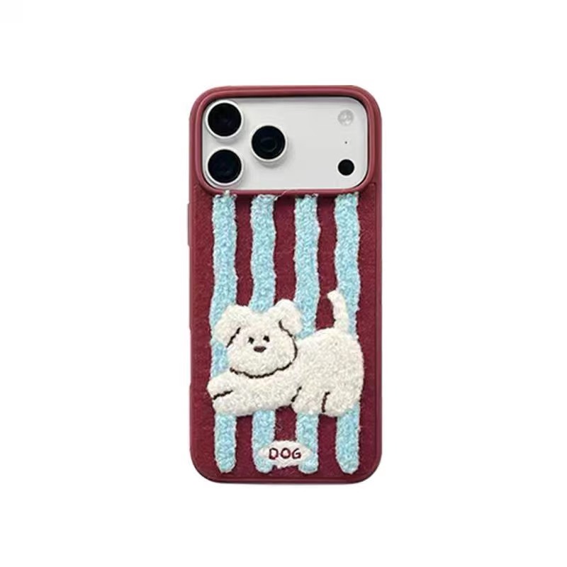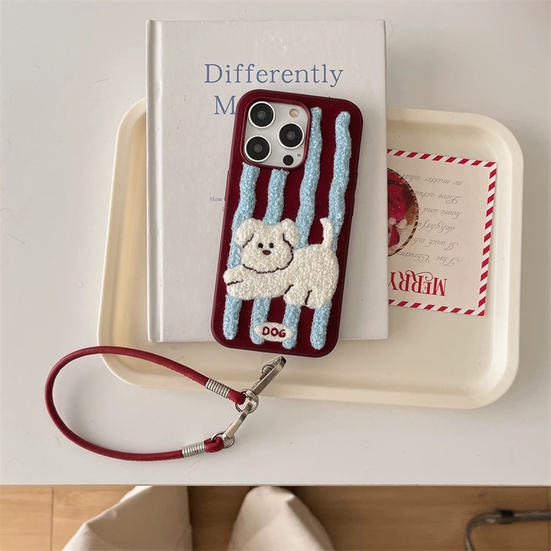 ストライプワンちゃんブラウンストラップ iphoneケース