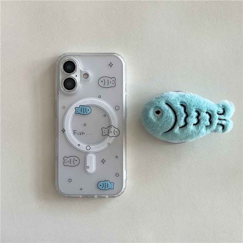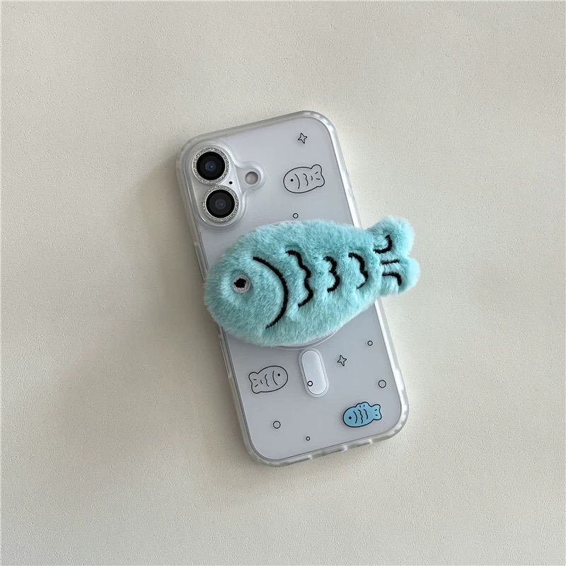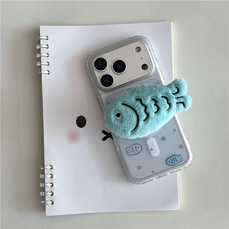 Blue fur fish magsafe grip iphoneケース【Magsafe対応】