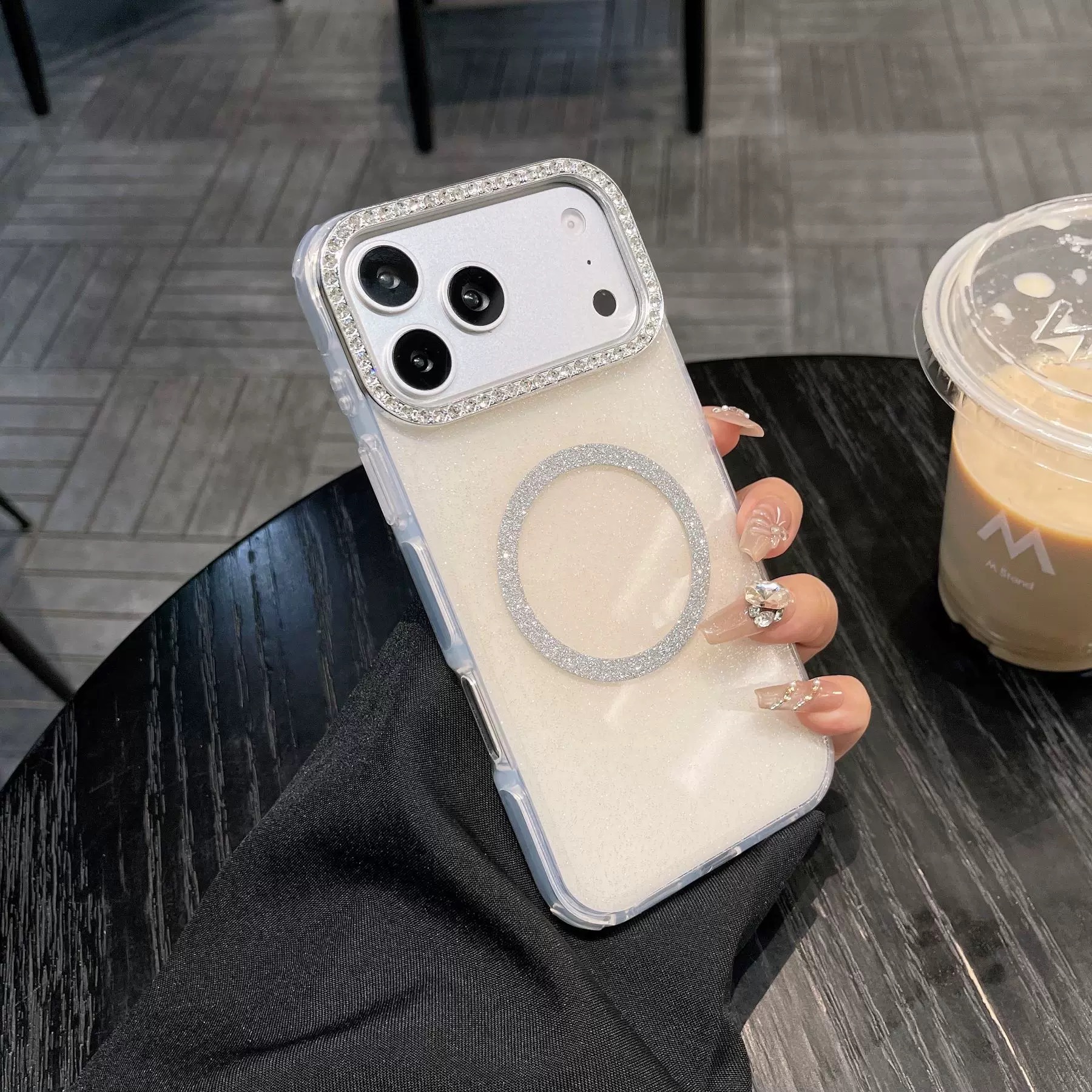 グロッシーシルバーmagsafeラインジュエル iphoneケース