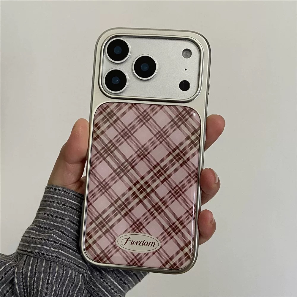 Letter pink check silver side iphoneケース