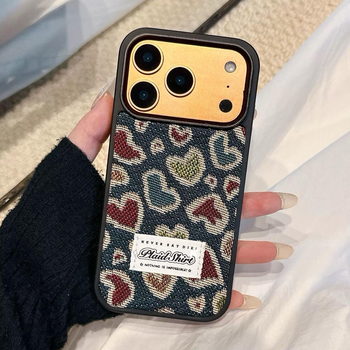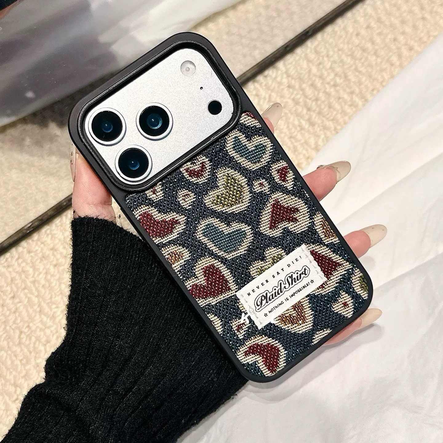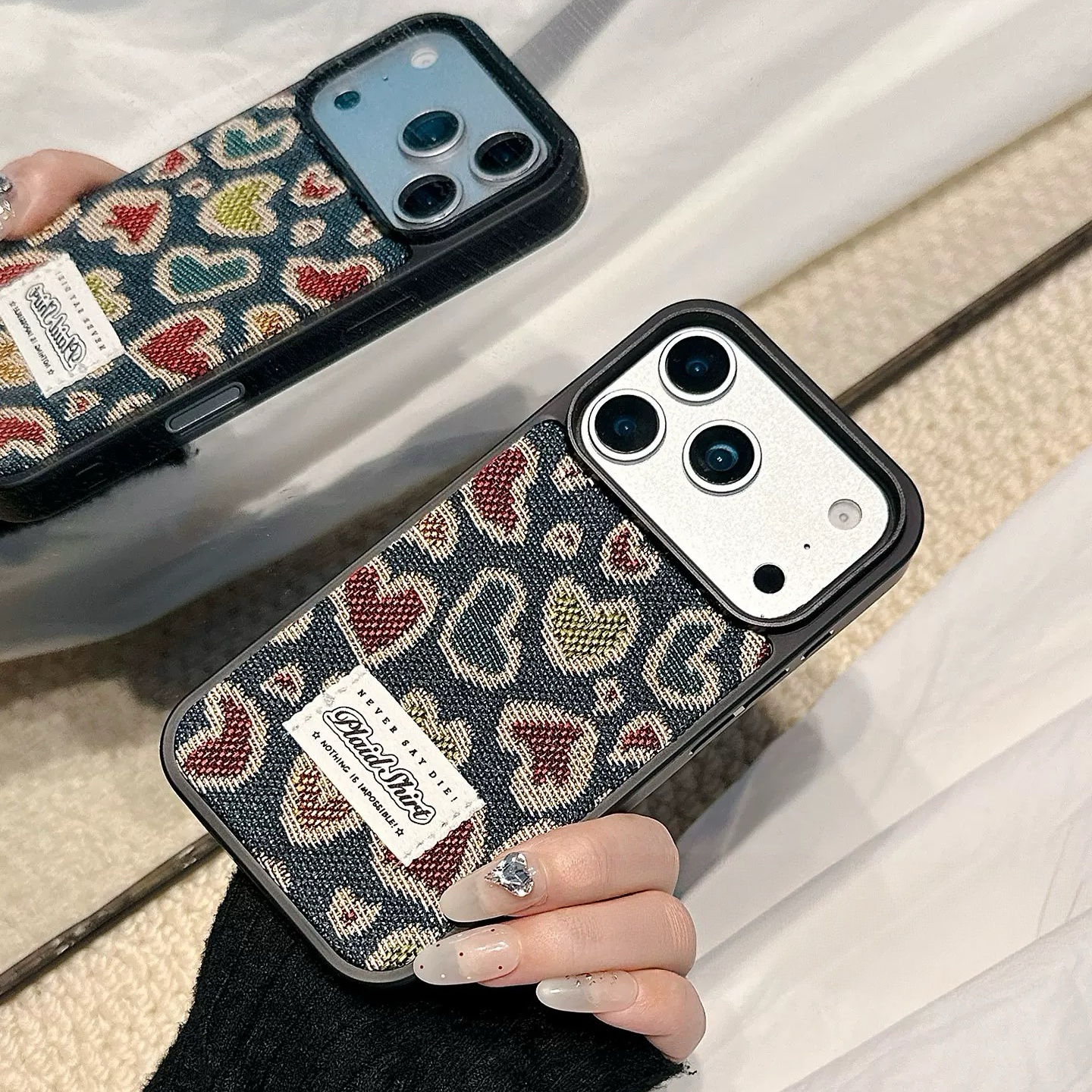 Heart pattern denim iphoneケース
