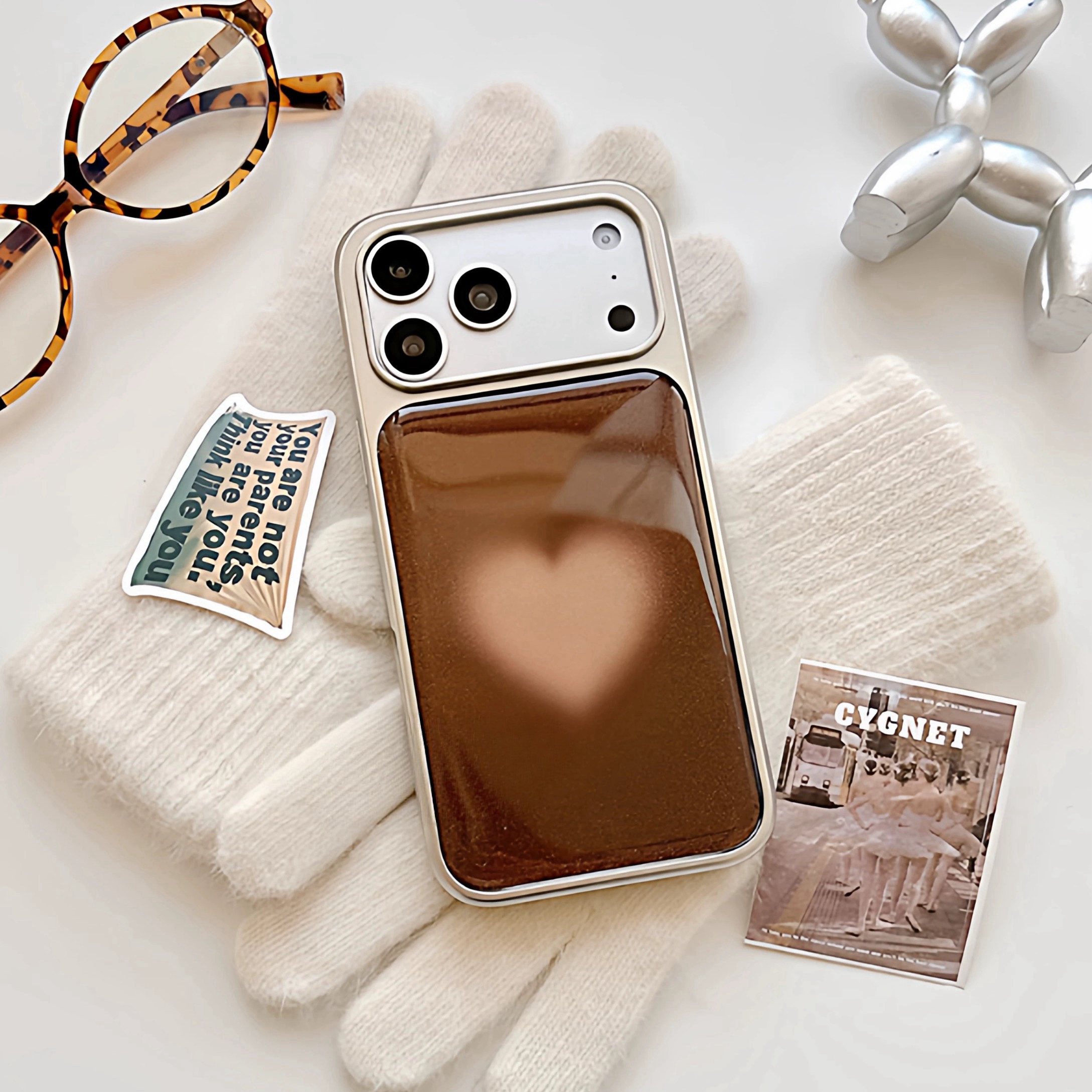 ブラウンハートグリッターシルバーサイド iphoneケース